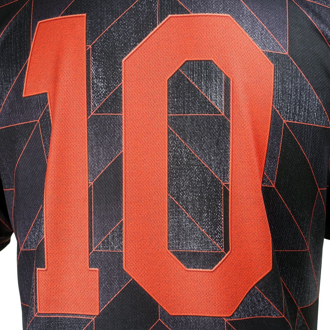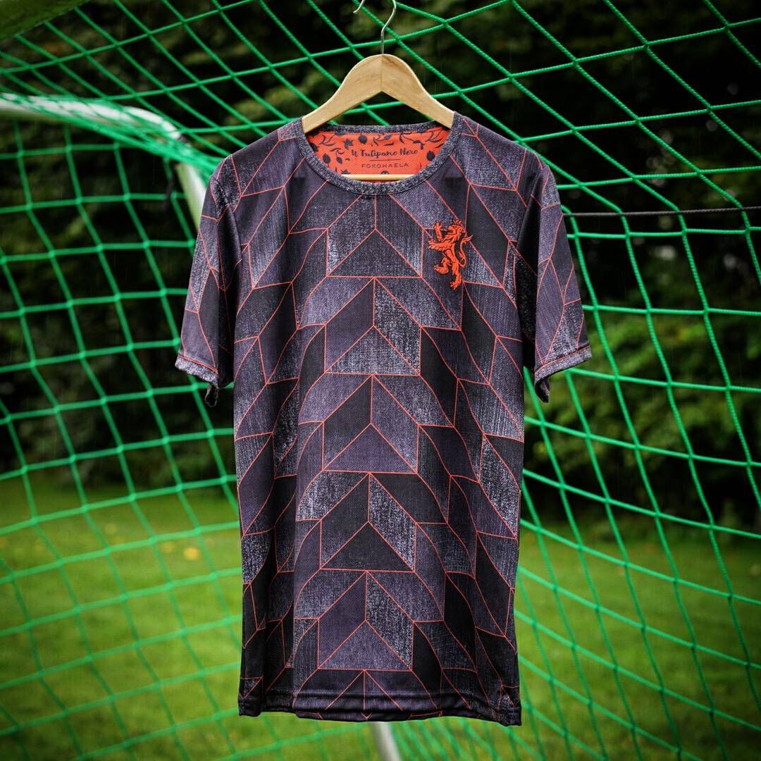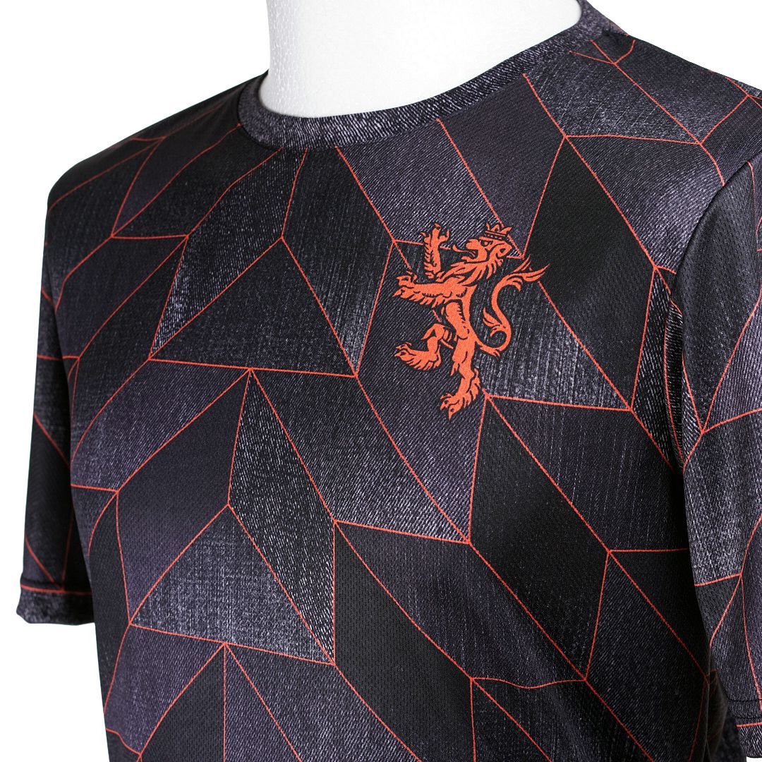 The jersey recalls one of the most original jerseys ever made: the Holland national team kit for Euro 1988 designed by adidas when their Oranje won the only international trophy. The original jersey has a geometric fantasy with a light orange colorway, the Tulipano Nero instead is darker, with a denim effect that exalts the orange color of the geometric figures' sides and all the details of the jersey, especially the astonishing vintage Lion crest.