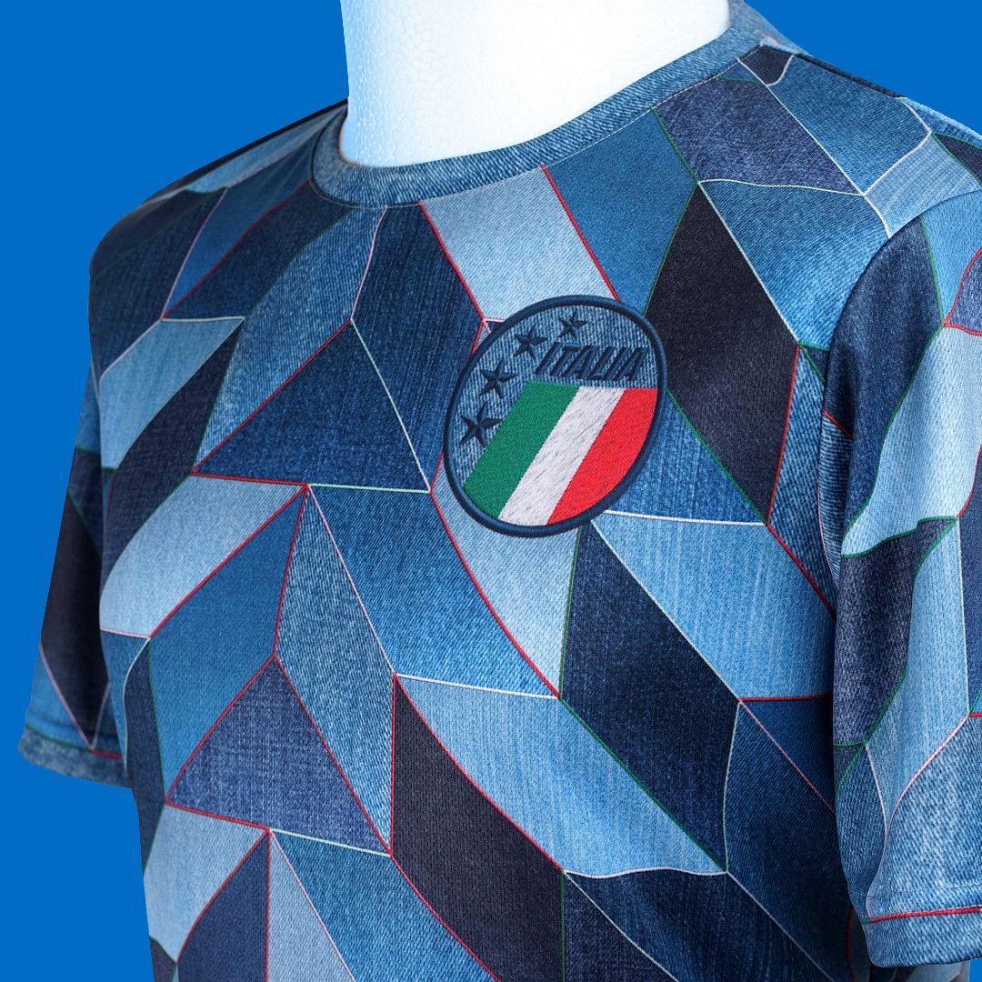 The geometric pattern of the Dutch jersey is applied on the Italian total blue shirt designed by diadora. The lines of the figures are green, red and white, while the inside is colored with different shades of denim blue, that gives a jeans touch to the jersey. In the Euro 1988 the Italian squad was eliminated by the Soviet Union in the semifinal, so they have never played against the Oranje team and their champions, that were playing in Italy for the Arrigo Sacchi's Milan. A very nice detail of the jersey is the Italian crest: the design is the original one from 1988, but if you notice there are four stars, instead of three, because of the 2006's World Cup.