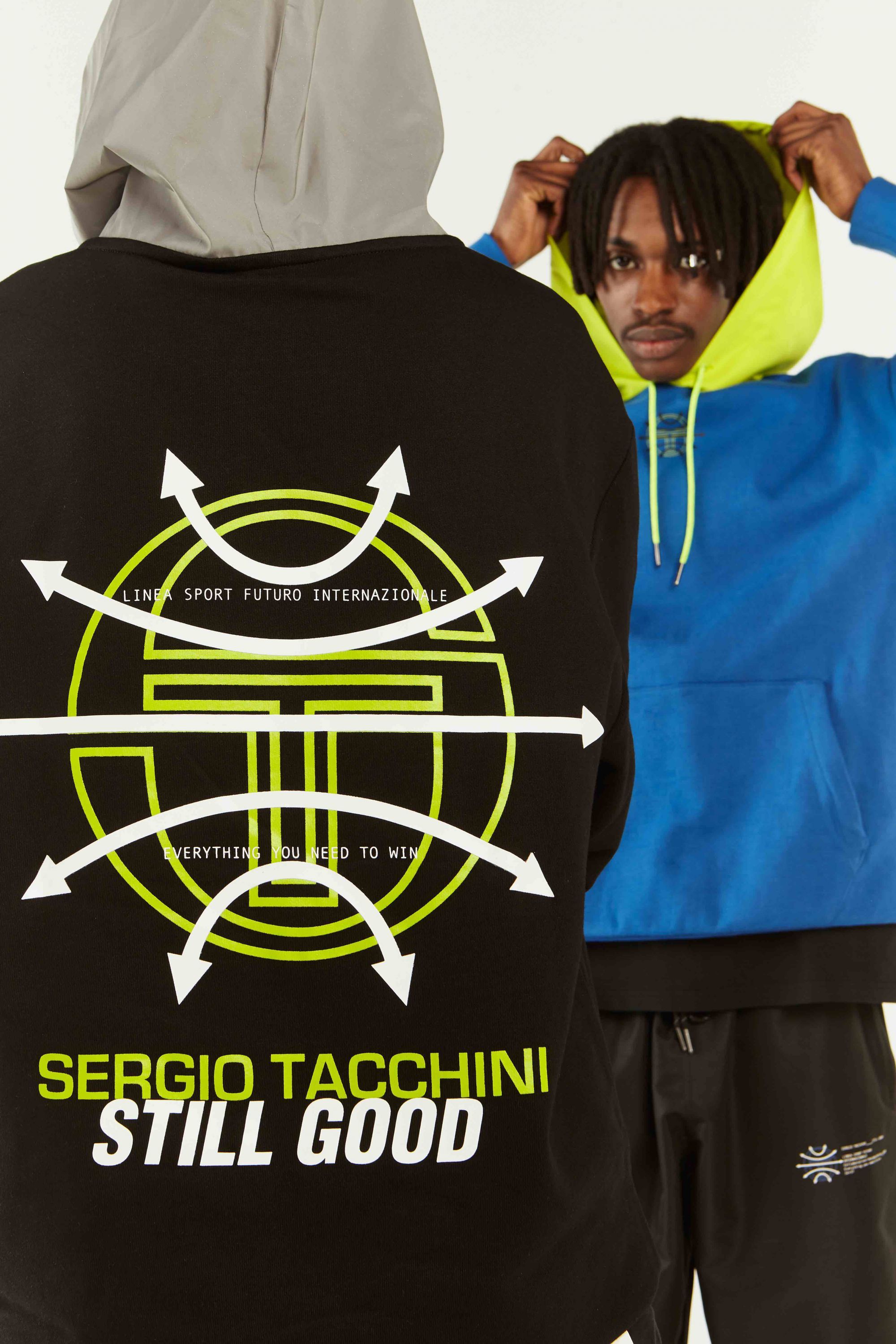 There will also be Sergio Tacchini with two new and different collaborations at the Paris fashion week starting this week. The first is the one that the Italian brand has made with the French brand Still Good: a dynamic capsule for the Fall Winter 19 season that will be presented on January 16th and which has as its main protagonist the reflective nylon, used as fabric of the trousers, of the caps of the sweatshirt and of the tracktop's sleeves. The sportswear collection consists in t-shirts, tracksuits and sweatshirts reinterpreted by Clement Taverniti (the designer and owner of Still Good). The colors used are mainly the electric blue but also strong colors like lime green and silver in addition to the classic black and white.