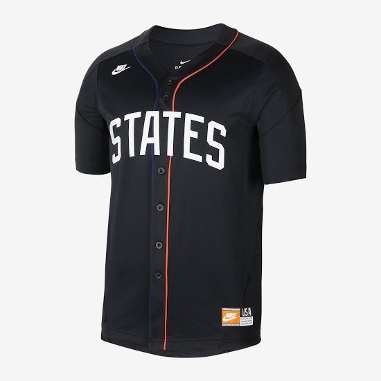 In this case, the Nike USA 2020 baseball shirt has a short-sleeved silhouette inspired by the classic sweaters used in MLB, black with red and blue details with the STATES cubital writing, a detail that has already been used on football shirts .