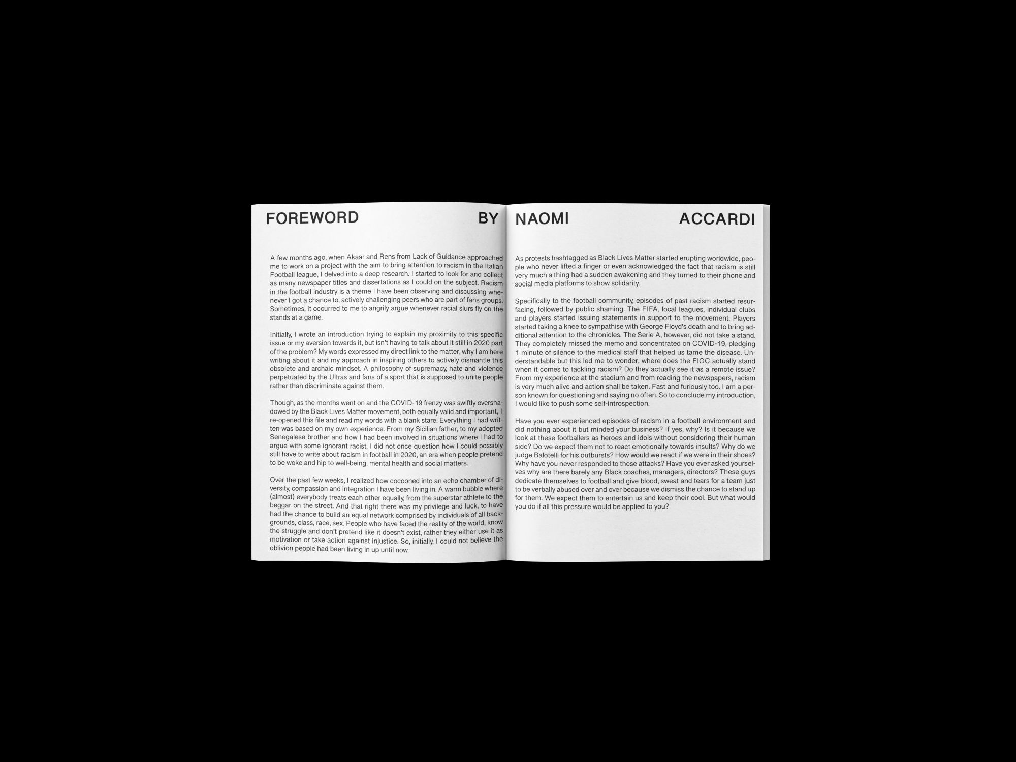 Lack of Guidance and Naomi Accardi launch a new project to fight the problem of racism in Italy and in the world of Italian football. The Dutch brand and the Milanese cultural storyteller interviewed professional footballers - also Bakayoko among the players who collaborated - and amateurs who were involved in racist episodes and who decided not to remain silent and to tell their experience.