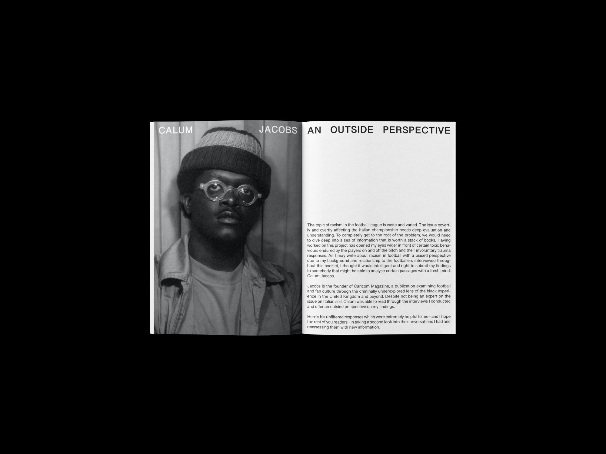 Football has always been at the center of the conversation on race, given its popular nature and cultural value in society. The diversity shown on the pitch is often not met in the boards nor in the fans pits, often leading to unsustainable, toxic environments for the players that are not correctly supported in the fight against the abuse. Moreover, the Italian football league has left the problem unresolved for far too long, leaving athletes open to overt racist chants, slurs and sometimes even physical attacks from the Ultras groups. Almost always these behaviors are left unpunished, allowing the ground to proliferate with hate and xenophobia. As the issue intensifies and no real measures are put in place, we decided to survey a number of footballers, professional and amateur, about their experience with racism in Italy. The result was a collaboration comprised of a T-Shirt and a small publication focused on the topic of racism, featuring a rework of the famous logo that rose to fame during the 1990 World Cup, when hooligans from all over Europe invaded Italy and caused mayhem, reiterating the horrible practice of bringing violence into stadium.