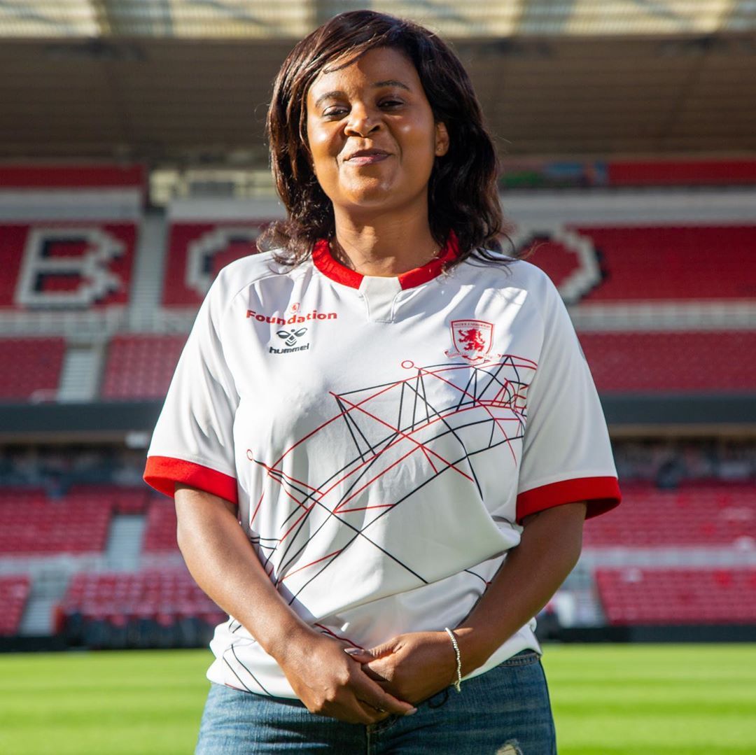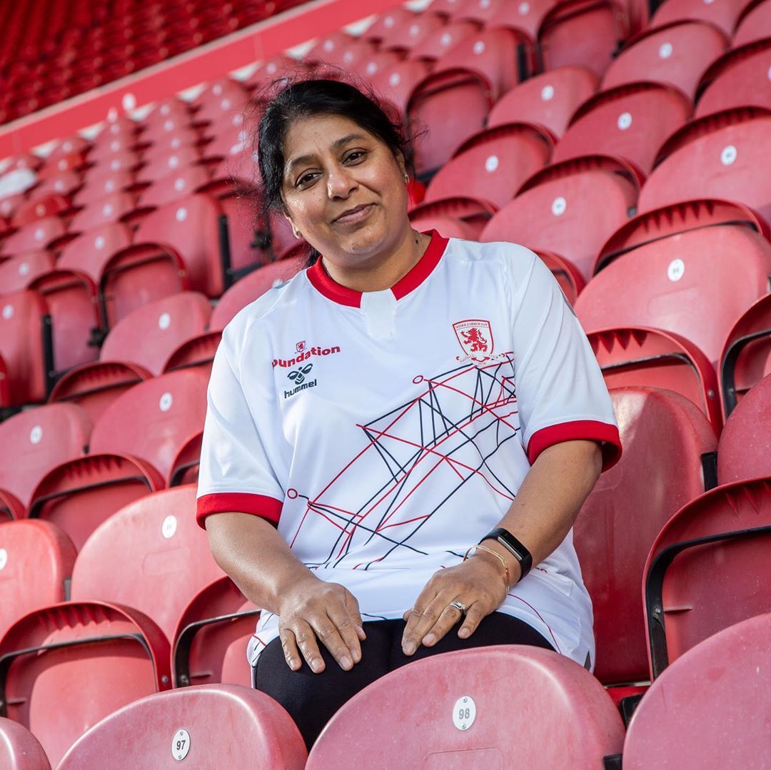 The new jersey of Middlesbrough F.C. for the Riverside Stadium A celebrative kit for their home