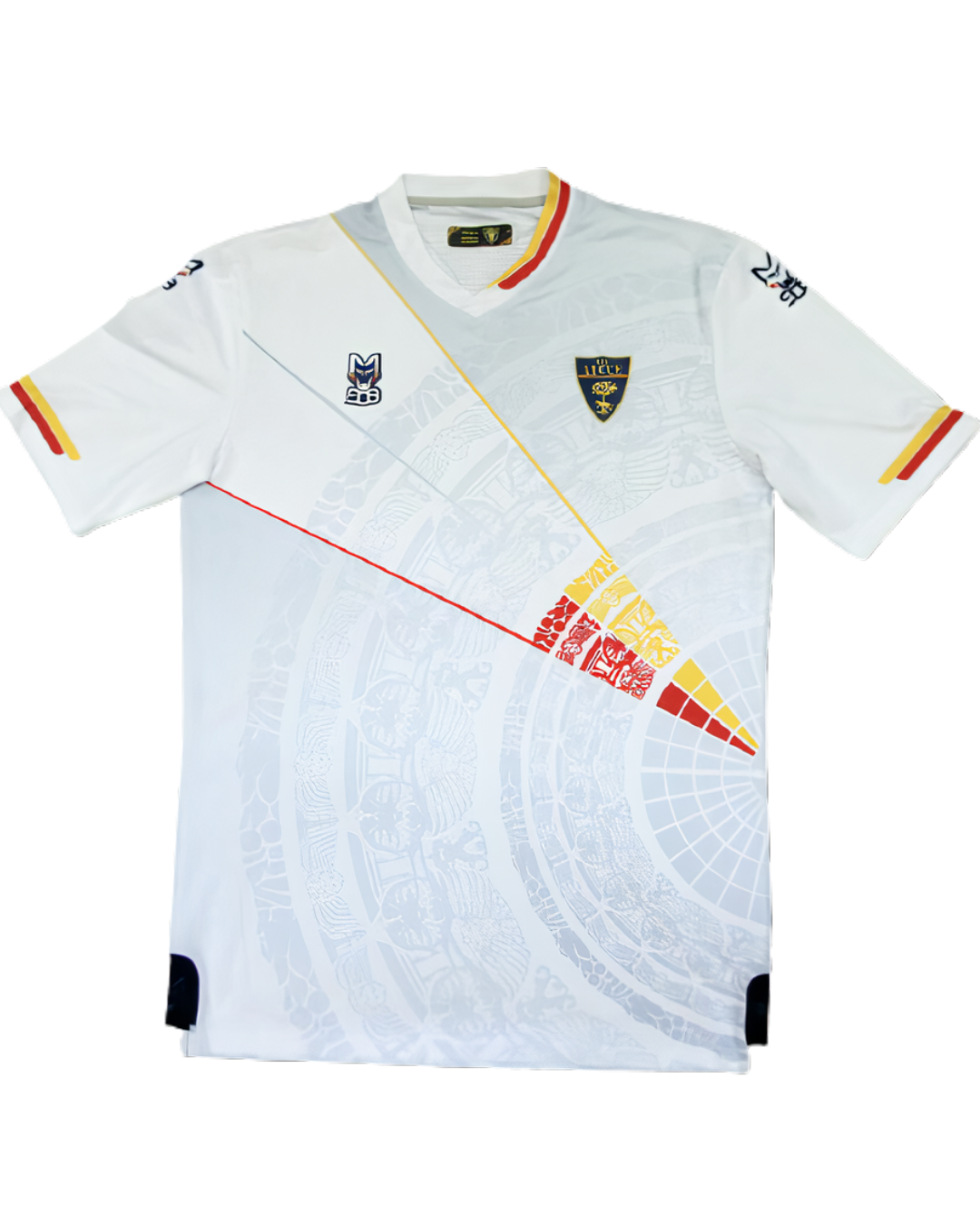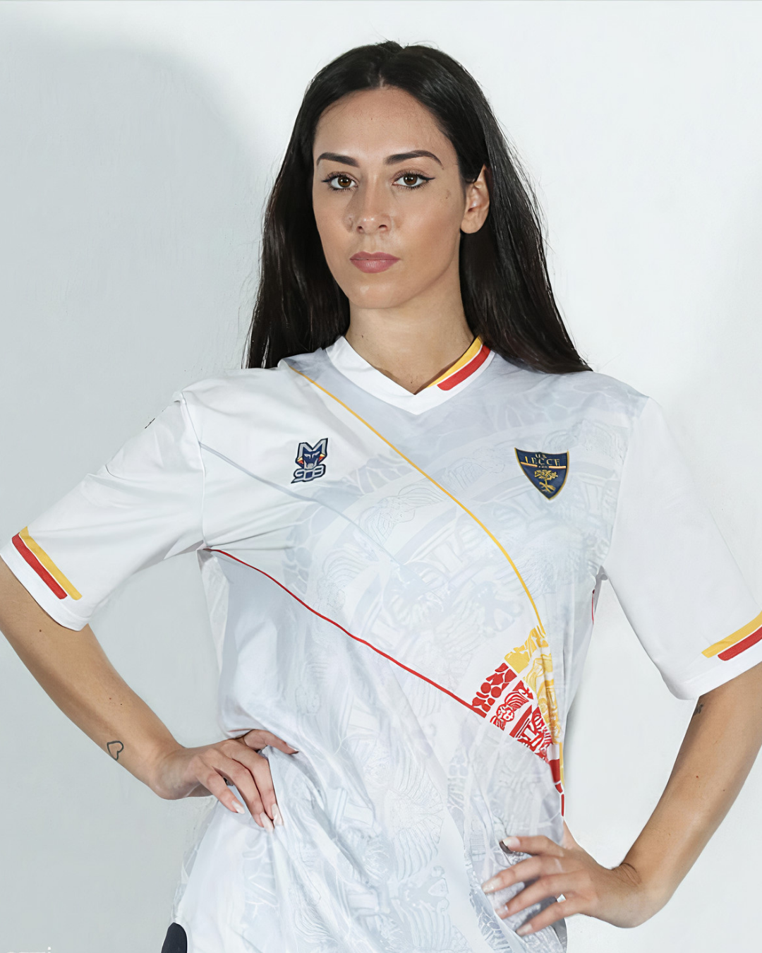 Lecce have recently unveiled their new three jerseys for next season, as always produced by in-house brand M908. The themes chosen for the Apulian team's designs by Mario Contaldo are: tradition, territory and faith. And it is precisely the away shirt that deserves a special mention for its baroque style. The Italian designer has decided to pay homage to one of the city's symbolic places, by the sculptor Cesare Penna. The rose window of the Basilica di Santa Croce stands out in the all-white away shirt. The rose window is printed in grey on the left side and continues on the back, where yellow and red rays of light recall the club's colours, while the shorts and socks are both white with yellow and red trim.