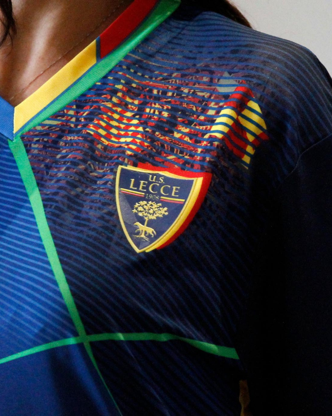 The new Lecce away jersey 2021-22 Baroque style, inspired by the rose window of the Basilica of Santa Croce