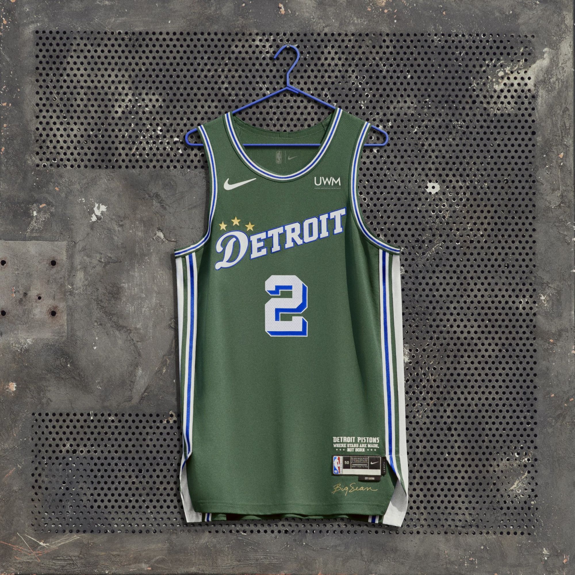 Then there are the jerseys designed by household names, designers and fans of the franchises who have had the opportunity to sign the jerseys of their favorite teams. As mentioned yesterday Ronnie Fieg created the entire new aesthetic identity of the New York Knicks, Daniel Arsham was responsible for the new Cleveland Cavaliers jersey entitled The Land, Big Sean co-created the Detroit Pistons jersey dedicated to the Santa Cecilia gymnasium, an undisputed venue for city youth basketball. Finally, the Golden State Warriors jersey created by local artist Allison Hueman to celebrate Women's Empowerment Month and featuring a large yellow rose at the bottom of the game uniform.