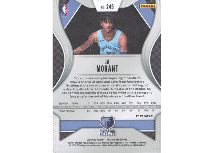 Quando i dirigenti Panini America lo scorso maggio hanno firmato un contratto con Ja Morant per avere un'esclusiva sulla sua carta autografata, sapevano che avrebbero avuto in mano una futura top-guard con un atletismo sbalorditivo il cui stile di gioco avrebbe esaltato tutti gli appassionati NBA. E sapevano anche che il natìo del South Carolina avrebbe potuto rompere le regole di mercato in qualsiasi altro settore, a maggior ragione in quello dello sport merch.