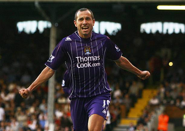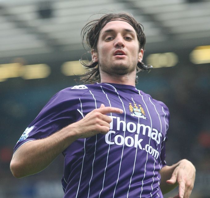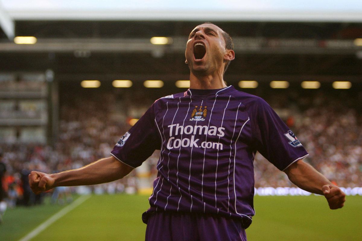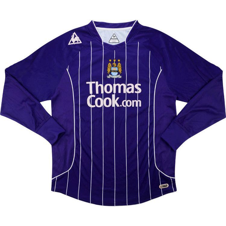 Another appreciated colour by Manchester City is purple, occasionally reappeared in the seasonal club's kits. In the 2007/2008 season, the away jersey was purple with slim and elegant white stripes, that almost "pinstriped" this shirt enriched by the Le Coq Sportif branding on the shoulder and by the main sponsor on the centre of the jersey. The club crest was located on the centre. Yes, the man in the pic gallery is Rolando Bianchi!