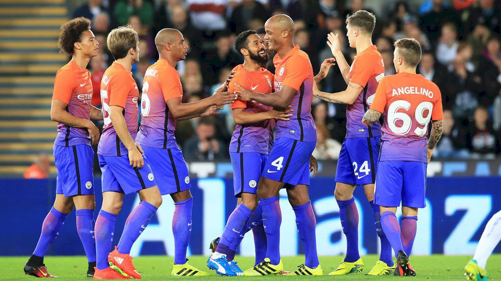 In the 2016/2017 season, Nike chose for the third kit a template (very criticized) with horizontal slim stripes that, starting from the bottom, went on and on to the top. Manchester City was one of the clubs that adopted this particular jersey, that combines orange and blue.