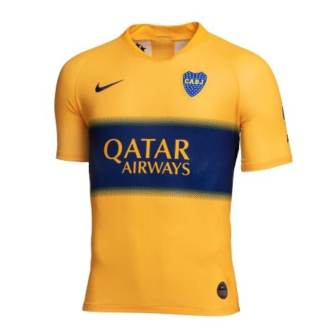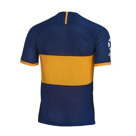 The Home jersey, presented with the symbolic slogan "Esto es Boca", is practically the same as last season, with the confirmation of the sponsor Qatar Airways, a very dark shade of blue and the V-neck in yellow, a color that also distinguishes the end of the sleeves. Blue shorts and socks complete the kit.
