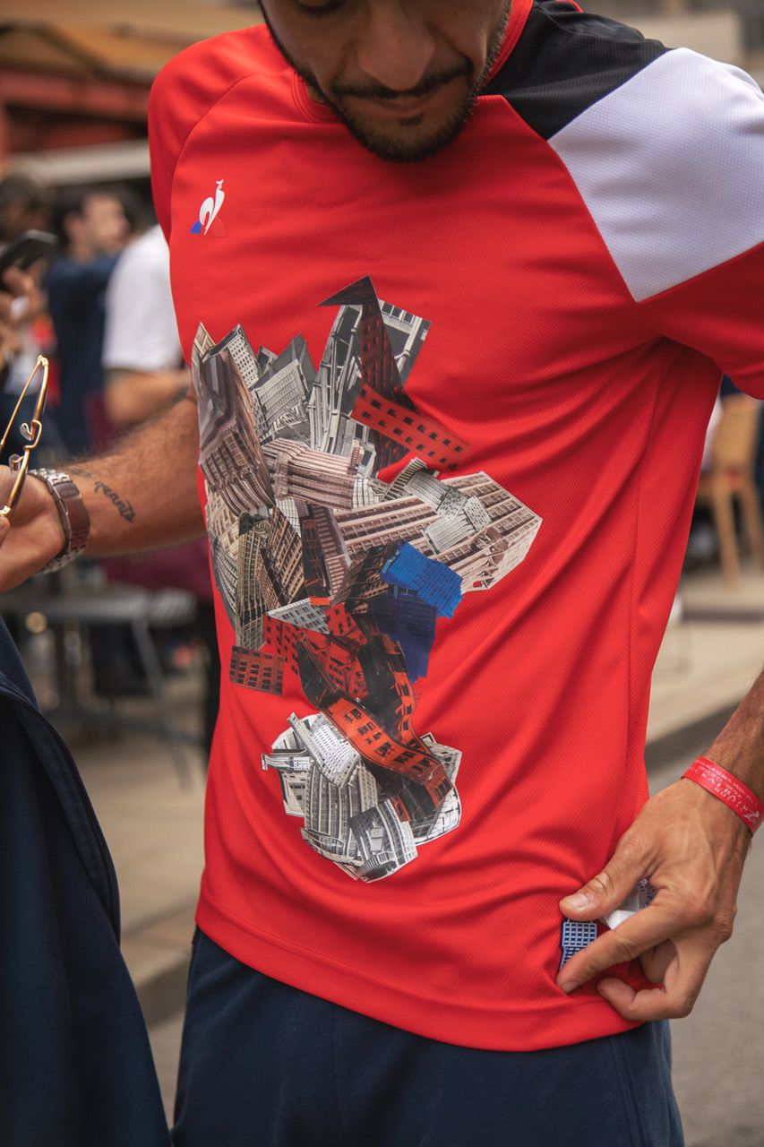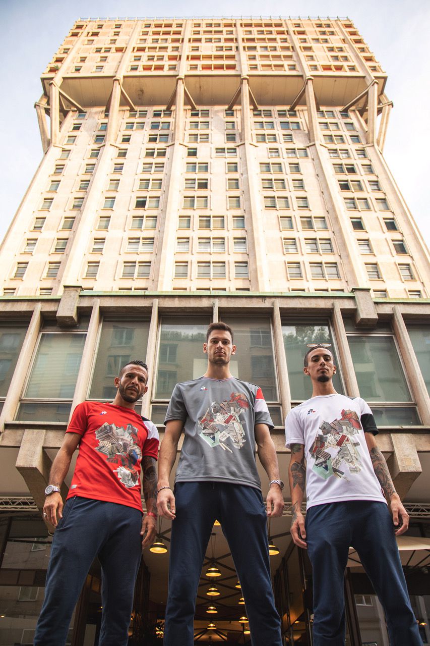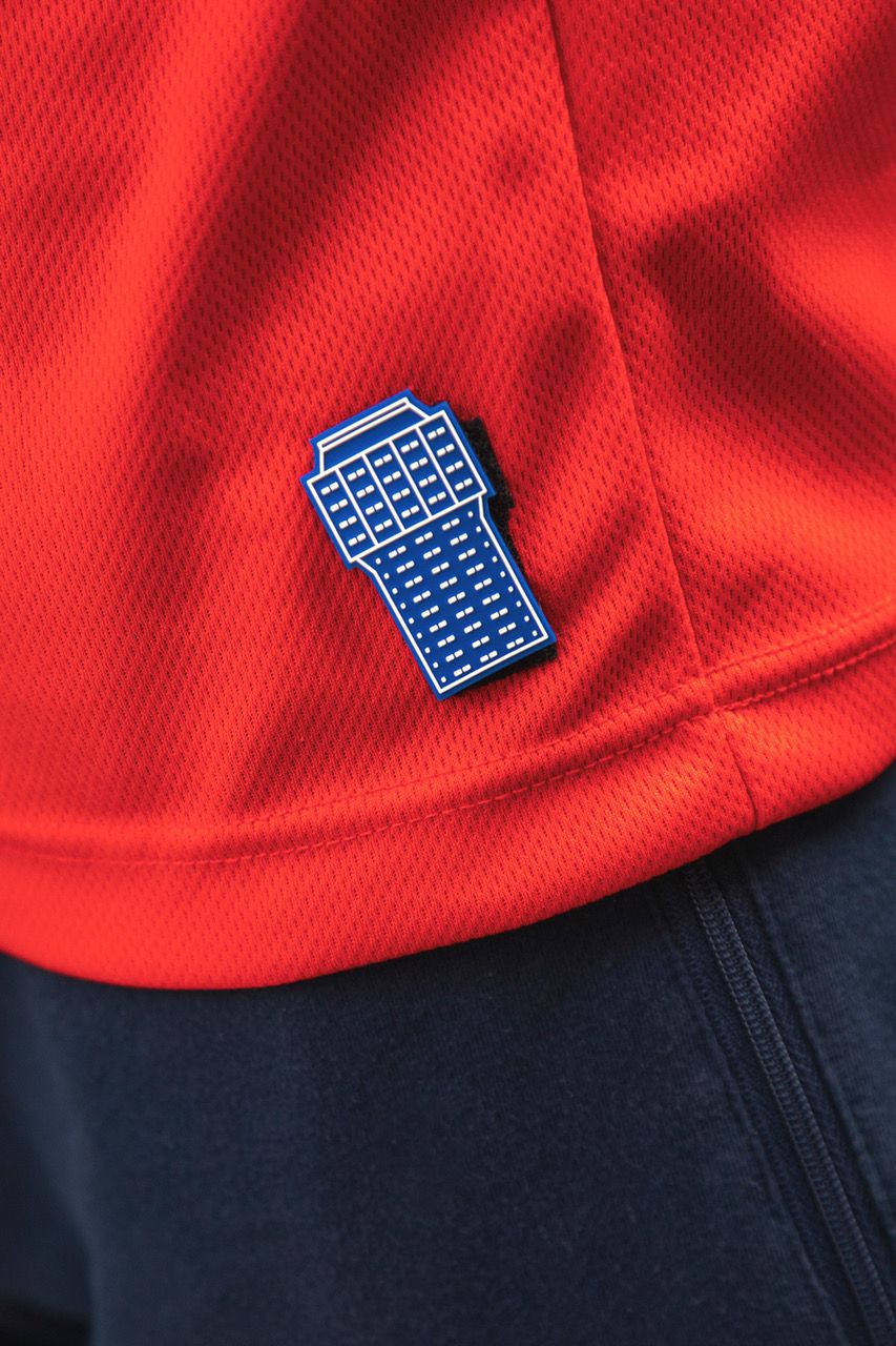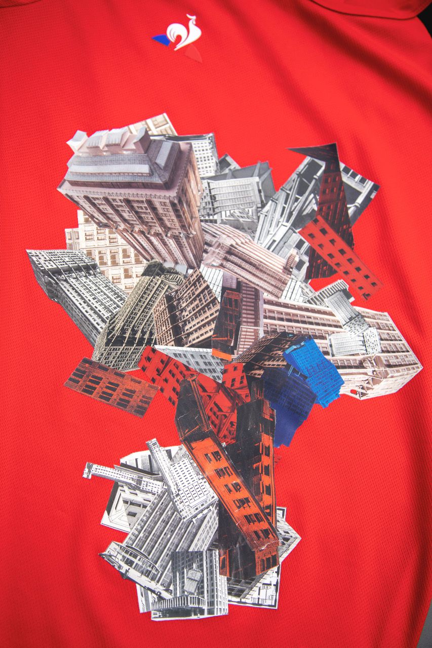The jerseys, also this year produced by Le Coq Sportif, were made in a limited edition and created by the artist Francesca Belgiojoso, a relative of the homonymous architect who designed, with Peressutti and Rogers, the famous brutalist mushroom of Milan, the Velasca Tower, an indissociable symbol of the club and present not only in the crest, but also in the form of three different patches to be applied on the velcro. On the chest there's a large collage of newspaper clippings, photos and magazines depicting fragments of towers.