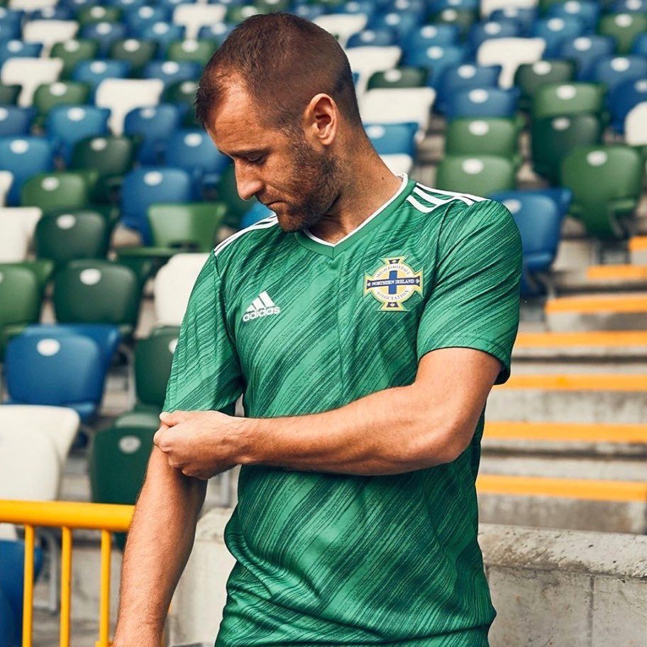 Last to be presented, the new Northern Ireland kit was previewed from the women's team, during the match against Wales. The jersey is inspired by the design of the jerseys worn by the national team in the 80s, with a texture with diagonal lines darker than the typical green color. Unlike the other kits presented these days the design is rather basic, with a thin collar and the edges of the sleeves not in evidence. The Three Stripes are inserted on the shoulders in white and on the shorts in green, the kit is completed by the green socks with the elastic band of the same tone of the graphic design.