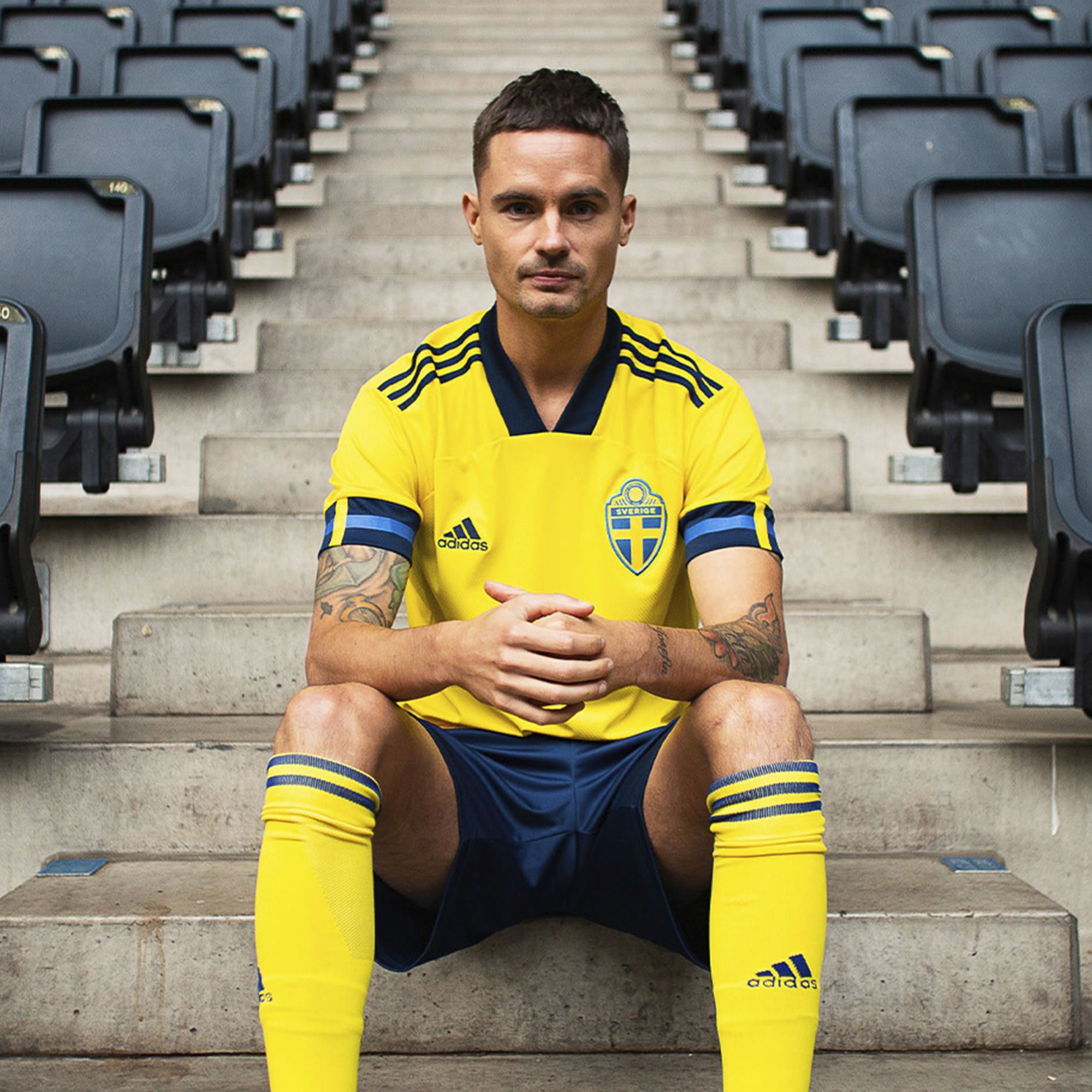 Sweden will play against Romania for a place in Euro 2020, in which it would participate with a very traditional yellow and blue shirt. The jersey is similar to the design used for the Wales kit, where the V neck and the trim on the sleeves stand out. The Swedish national team's look is more sober than that of the shirts presented for Germany, Spain and Belgium. It recalls the colours of the flag (blue sleeves) and it features "Sverige" written on the back of the collar. Among the testimonials, there were Albin Ekdal and the former Palermo Robin Quaison.