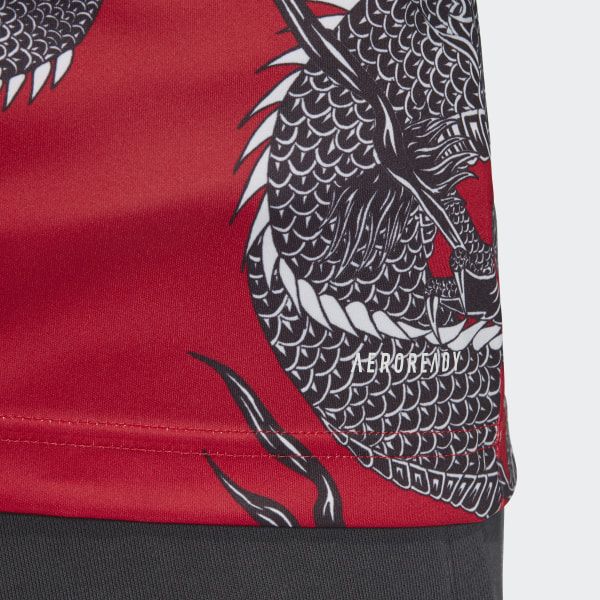 For the Chinese New Year, adidas unveiled a new Manchester United kit, which pays tribute to the transition from the Year of the Pig to the Year of the Mouse. The jersey presented by the German brand is the fourth designed for the Red Devils this season, although it will not be used in official matches. The new kit keep the club's social colours, but features special graphics for the occasion. The jersey is in fact characterized by the design of the iconic Chinese dragon that stands out on the red pattern. Black collar with golden adidas logo and Manchester United crest in the middle of the chest complete the uniform.