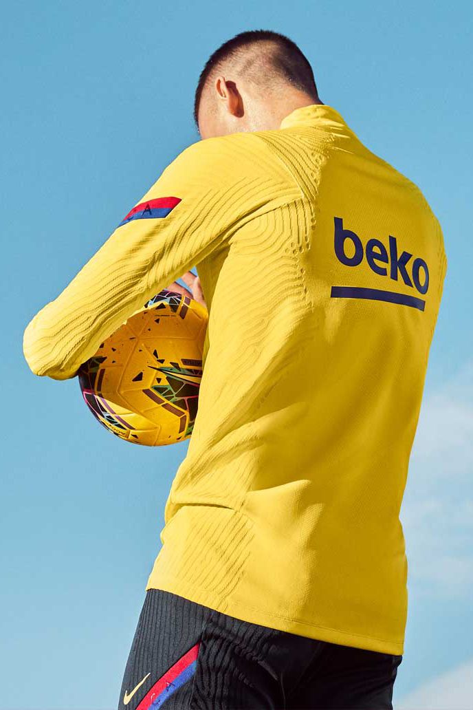 Nike has unveiled the new NextGen VaporKnit training kits for FC Barcelona: the Barça will thus become the first club in the world to exploit of the new technology launched by the American brand for all kits and training equipment. The innovative Nike creation has been studied to provide the Catalans with a series of items capable of maximizing freedom of movement, through a highly elastic and breathable fabric. The new training kits, also available in a female version, are mainly yellow and feature a red and blue contrasting Blaugrana strip on the sleeves, the word "Barça" and the black Swoosh.