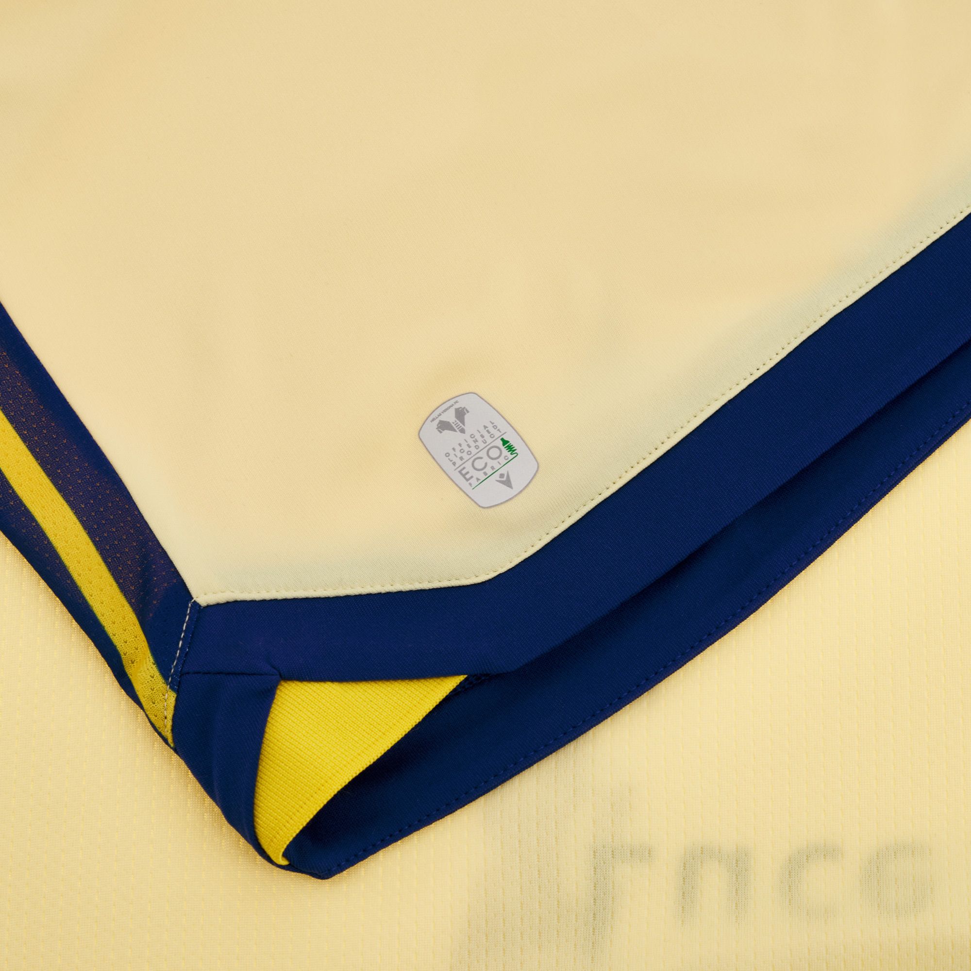 The away kit is completed by beige shorts with white drawstrings a blue half side stripe, beige socks with a blue top stripe with yellow stripe and on the back the club logo with the mastiffs facing opposite directions. The jersey has a Slim Fit, and the main fabric used is Eco-Fabric, 100% polyester sourced from recycled plastic and certified by the Global Recycled Standard, to ensure an especially breathable and environmentally conscious garment.