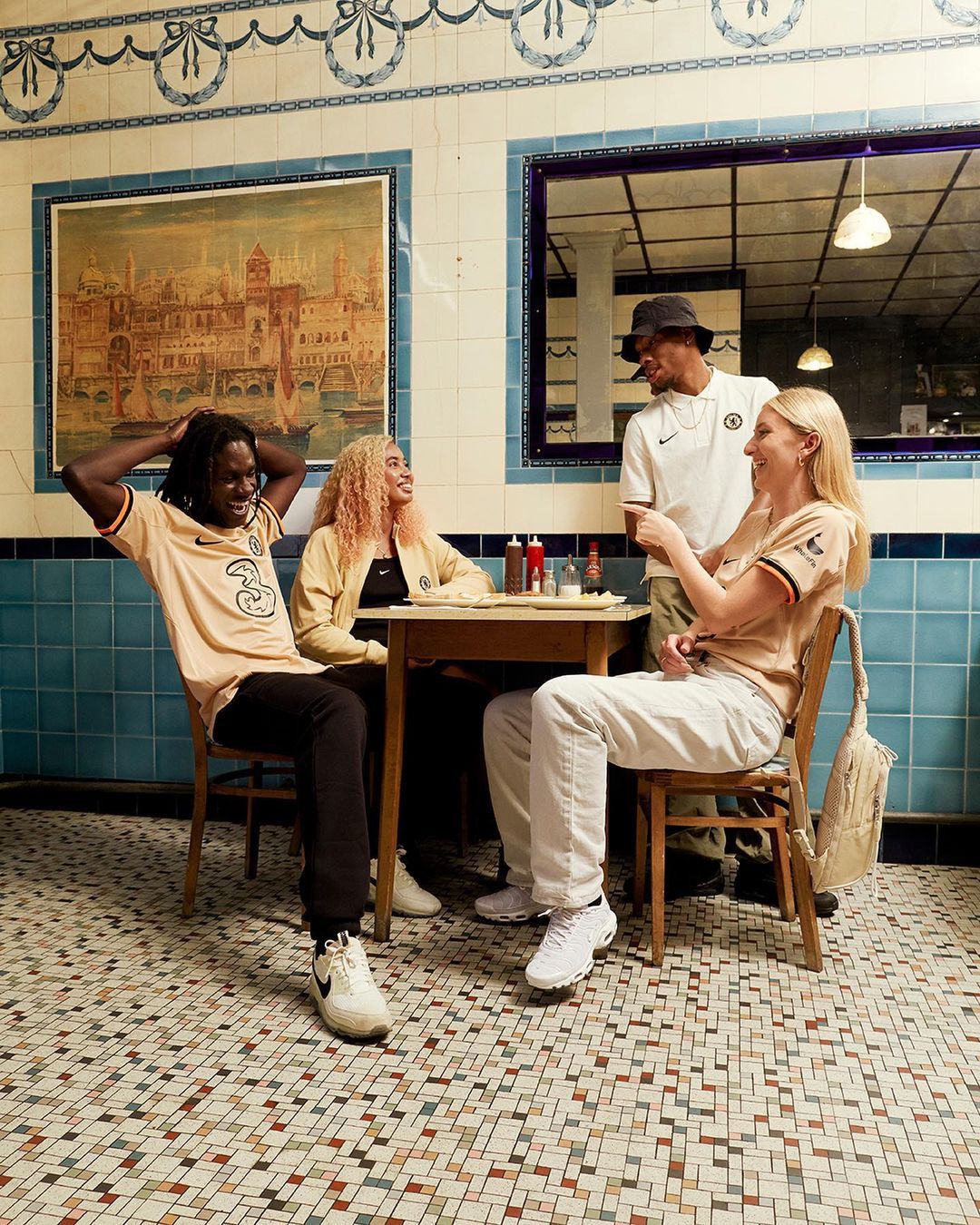 A jersey that, like all the others designed by Nike for this season, remains faithful to the Vaporknit 2022 template, protagonist of all the kits this season, including the national team. The design is inspired by the idea of "Chelsea Smart", or when the classic meets the future, the perfect recipe to create the future of West London fashion for a club on the rise in recent years. The location of the shoot is no coincidence either, the new shirt was shot in its entirety in the elegant River Café in Fulham, a bar near Putney Bridge with a vintage 1960s feel. Wearing the new third kit are the creators and fans of the Blues from the Soho Yacht Club community, an emerging streetwear brand from west London that is pushing the boundaries of fashion, just as the London club aims to do, on and off the pitch.