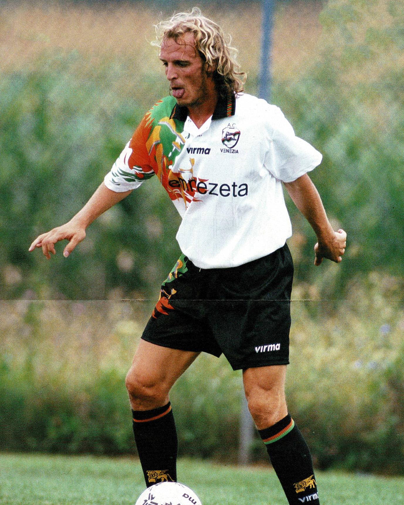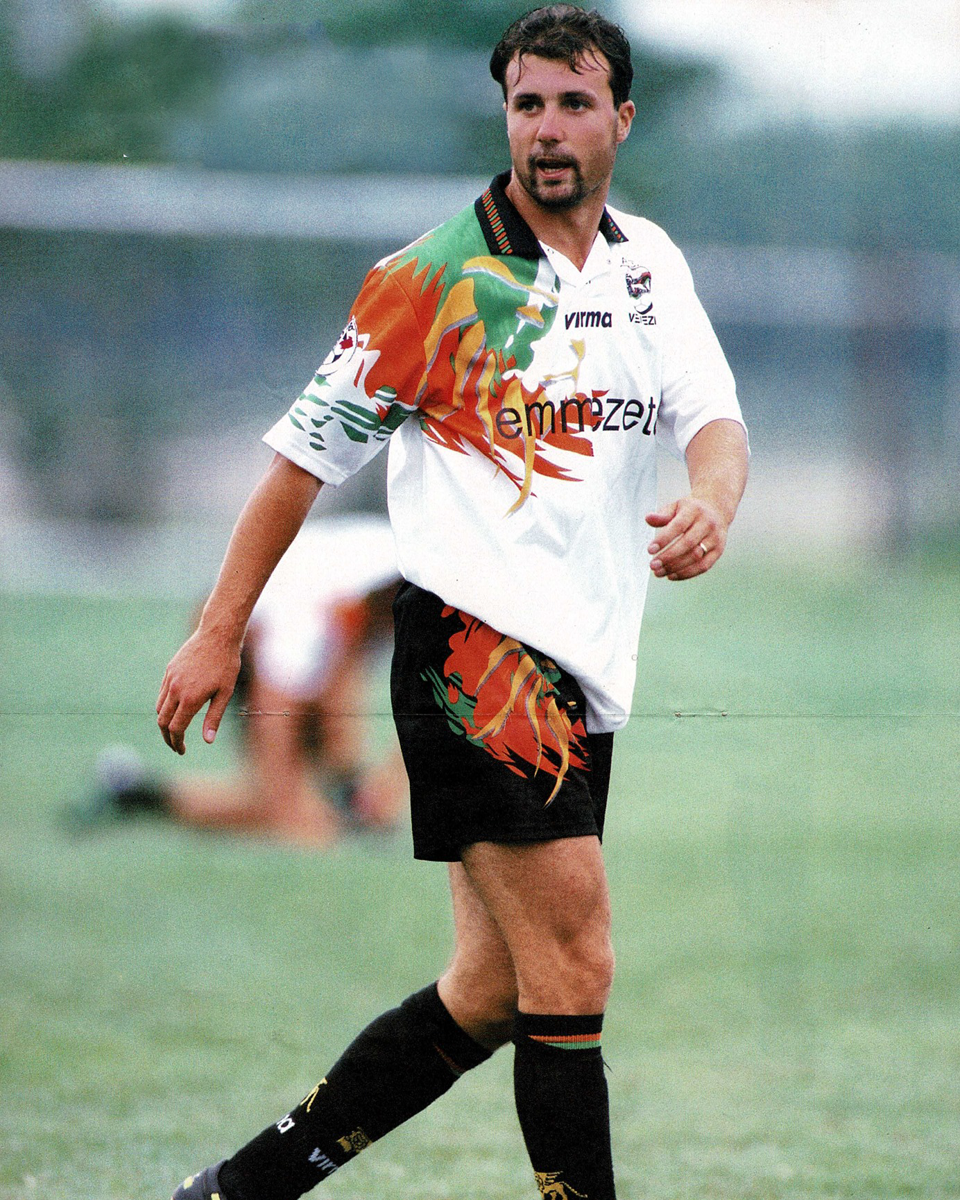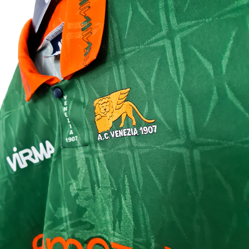If you are a true fan of jerseys, it is impossible that you do not know Virma. The Italian company founded in 1982 in a town in the province of Treviso has signed some of the most iconic jerseys the Italian top flight has ever seen. We are talking about those of Venezia, of which the Italian company was a sponsor from 1995 to 1998. The Venetian brand for the orange-black-green team created the same home jersey for three years in a row, exploiting the city's symbol, the San Marco lion, and transforming it into a strange but very recognisable pattern in orange and green that characterised the entire jersey. The rest was done by two of the elements that are also present in the jersey of the team from the Lagoon this season, the collar and long sleeves. Unfortunately, however, after those three years the Italian brand was unable to follow up on the good things it had done, embellishing the jerseys of Siena and San Marino for just a few seasons before disappearing for good.
