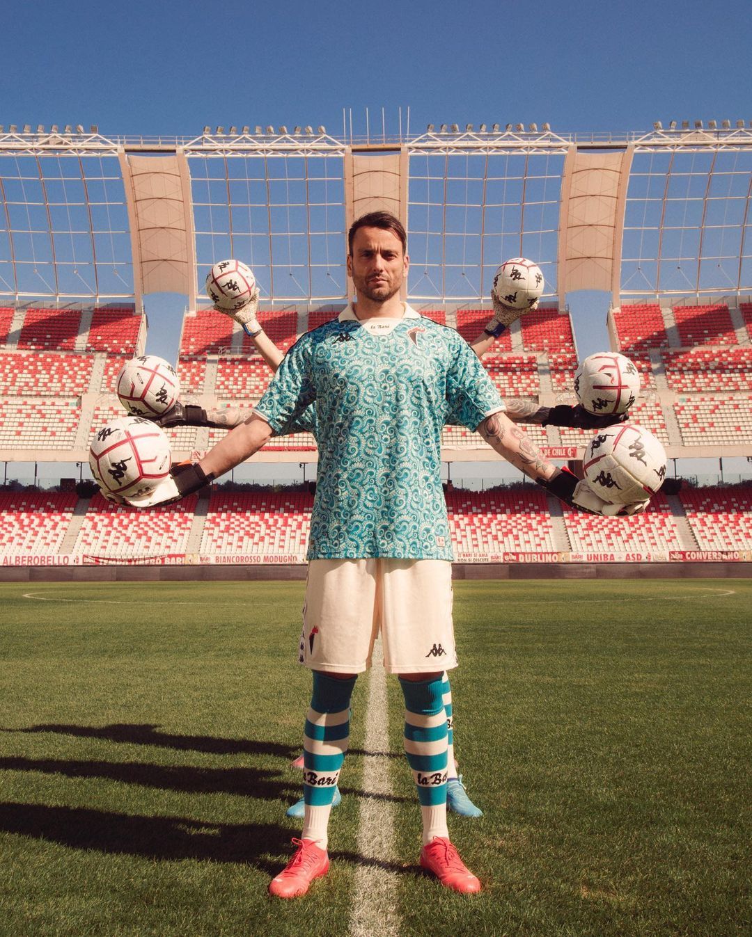 Not only Samp, the shirts worn with the Milan team are also unforgettable, and Pagliuca spoke about them in the interview, rattling off another anecdote that is impossible to repeat today. In the year Umbro was sponsoring both Inter and Tottenham, the Italian goalkeeper called the English company asking to wear the same shirt as Spurs, a request immediately granted but with some reservations. Umbro in fact sent the shirt with Tottenham's logo, which was then obviously modified for the match, stitching over that of the Nerazzurri. "The goalkeeper must be flamboyant, what I see today I don't like very much," he continues in the interview. Today, in fact, the role of the goalkeeper has been totally turned upside down. Today, compared to the past, a goalkeeper is also required to have a certain dexterity with his feet, he is the one who starts the game with the much-discussed build-up from below. The extreme defender today also lives outside his penalty area, he must be very careful to measure and dose his exits, and as in the cases of Maignan and Ederson, he can be decisive in the construction of a goal action. Last season, in fact, these two goalkeepers ticked the assist box, serving up perfect balls for their sprinters to gently send over the goal line. Qualities that were certainly not used in the 1990s, where football was certainly different, much more physical and cumbersome in certain aspects. And just as the role of the goalkeeper has changed, so has its aesthetics. Today, in fact, there are few brands that decide to create a goalkeeper shirt worthy of note that does not take up the classic basic colours, useful to distinguish them from the moving players. A sort of bubble in which the extreme defenders are now in, except for a few sporadic cases, such as that of Bari and LC23, who last season showed how a goalkeeper can still have a colourful and somewhat unconventional kit.