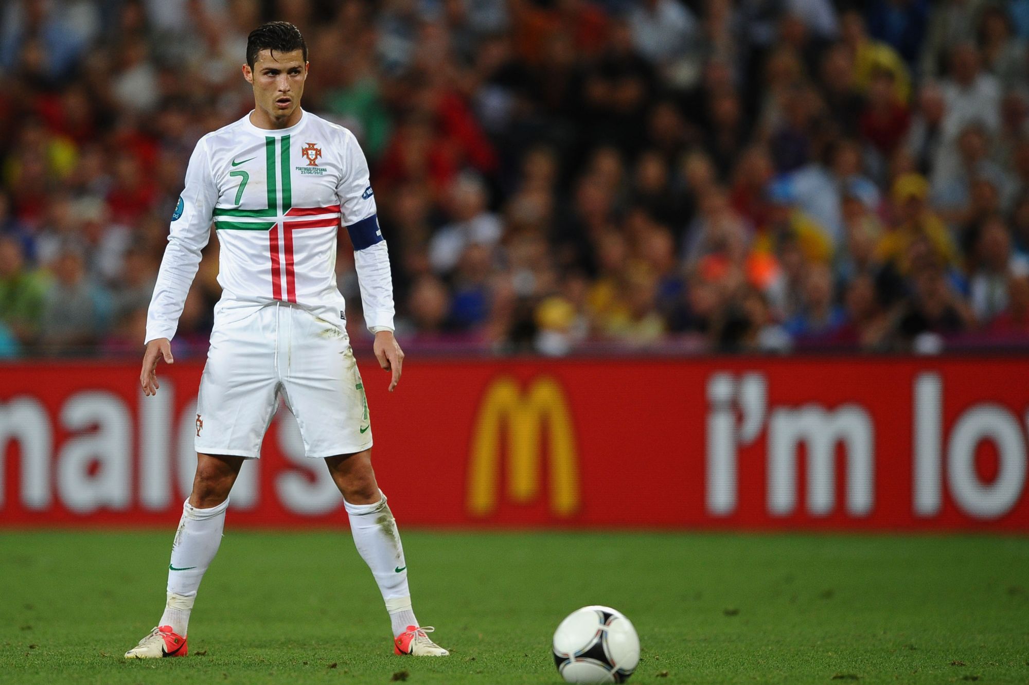 The second jersey of Portugal 2012-2013 is a nod to the country's naval tradition and features a predominantly white jersey with a large cross on the front. The style of the symbol is based on that of the Order of Christ, which featured on the sails of the Portuguese caravels that set out to discover the New World in the 16th century. The diagonal separation between the green and the red of the cross is also an allusion to Lusitanian symbolism, particularly the armillary sphere, an instrument that also appears in the flag of Portugal.