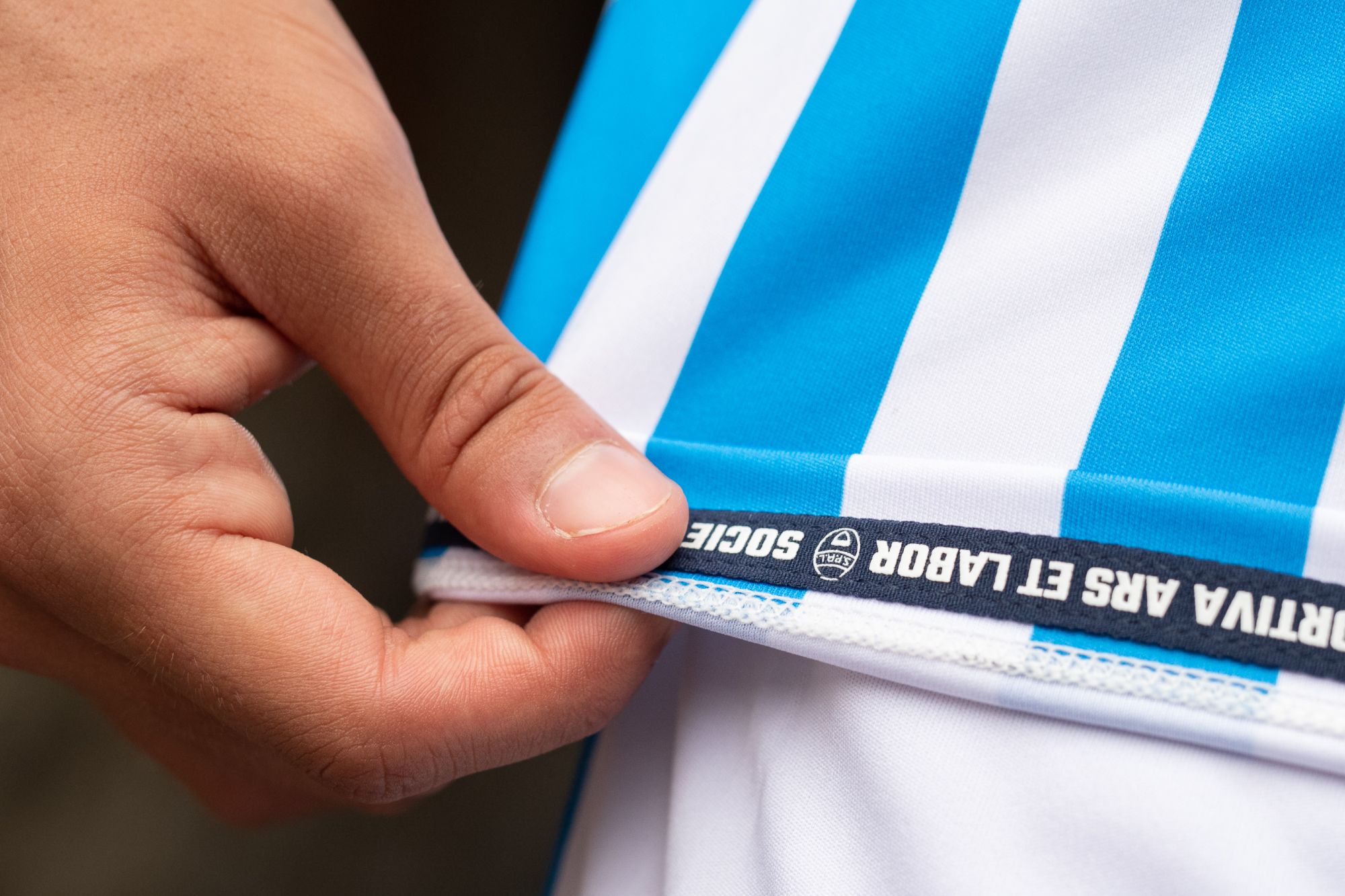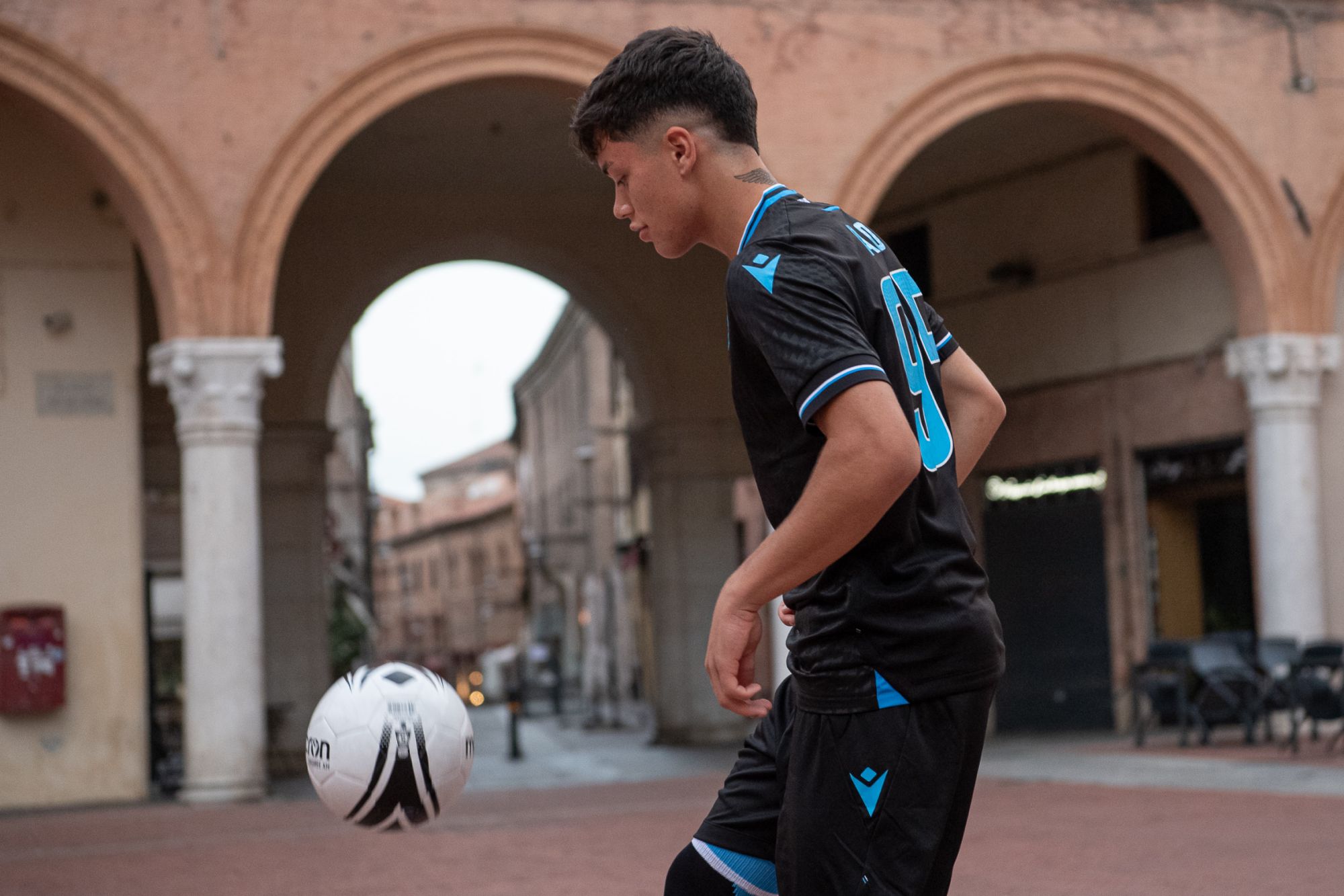 For the Away jersey, on the other hand, the contrast between black, which characterises the entire design, and light blue was chosen, an element that highlights the Macron logos, that of the club and the edges of the jersey. Just inside the lower edge of both shirts is the detail of the full and extended name of the Ferrara team SOCIETÀ POLISPORTIVA ARS ET LABOR interspersed with the club logo.