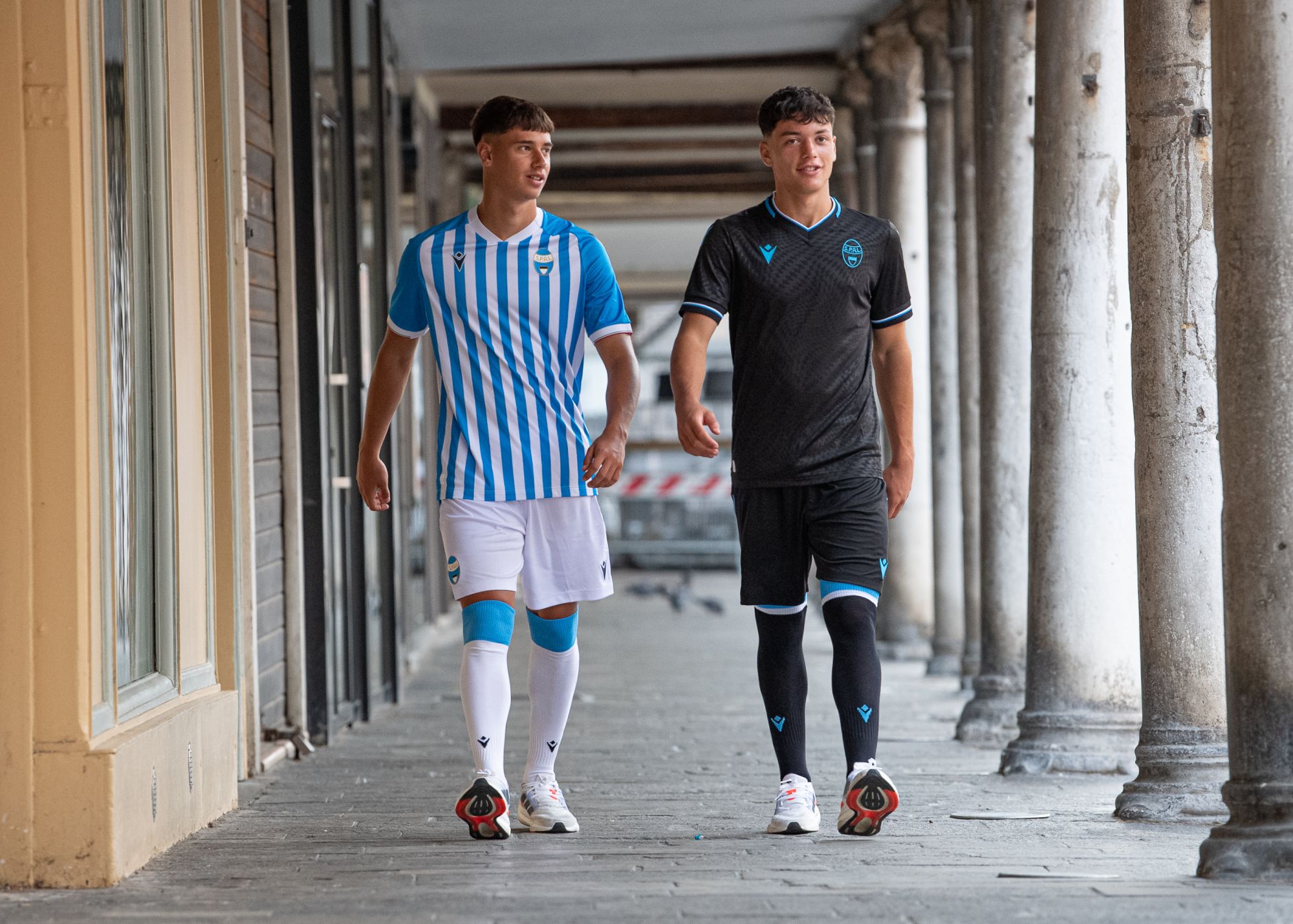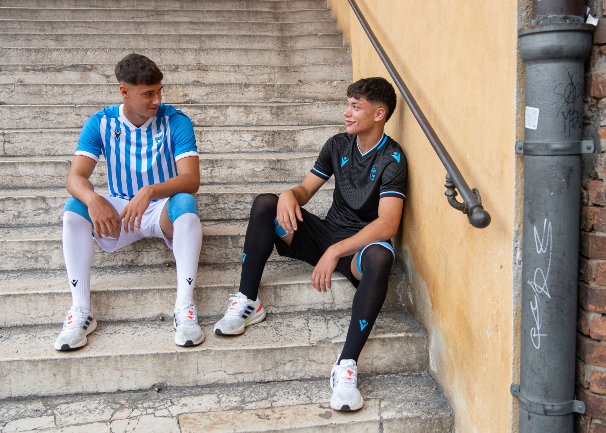 Despite the disappointment of the last championship, for SPAL it is time to look to the future again, starting with next season, for which the Home and Away shirts that the players of the Ferrara-based team will wear have been presented. Macron has chosen to follow tradition with a Home kit in which white and blue vertical stripes dominate both the front and back, with a V-neck and sleeves on which tricolour details are inserted. The kit is then completed by white shorts and socks with blue details, as can also be seen in the campaign video, filmed on the streets of Ferrara and starring two young faces of the SPAL rebirth such as Nicolò Contiliano and Emanuele Rao.