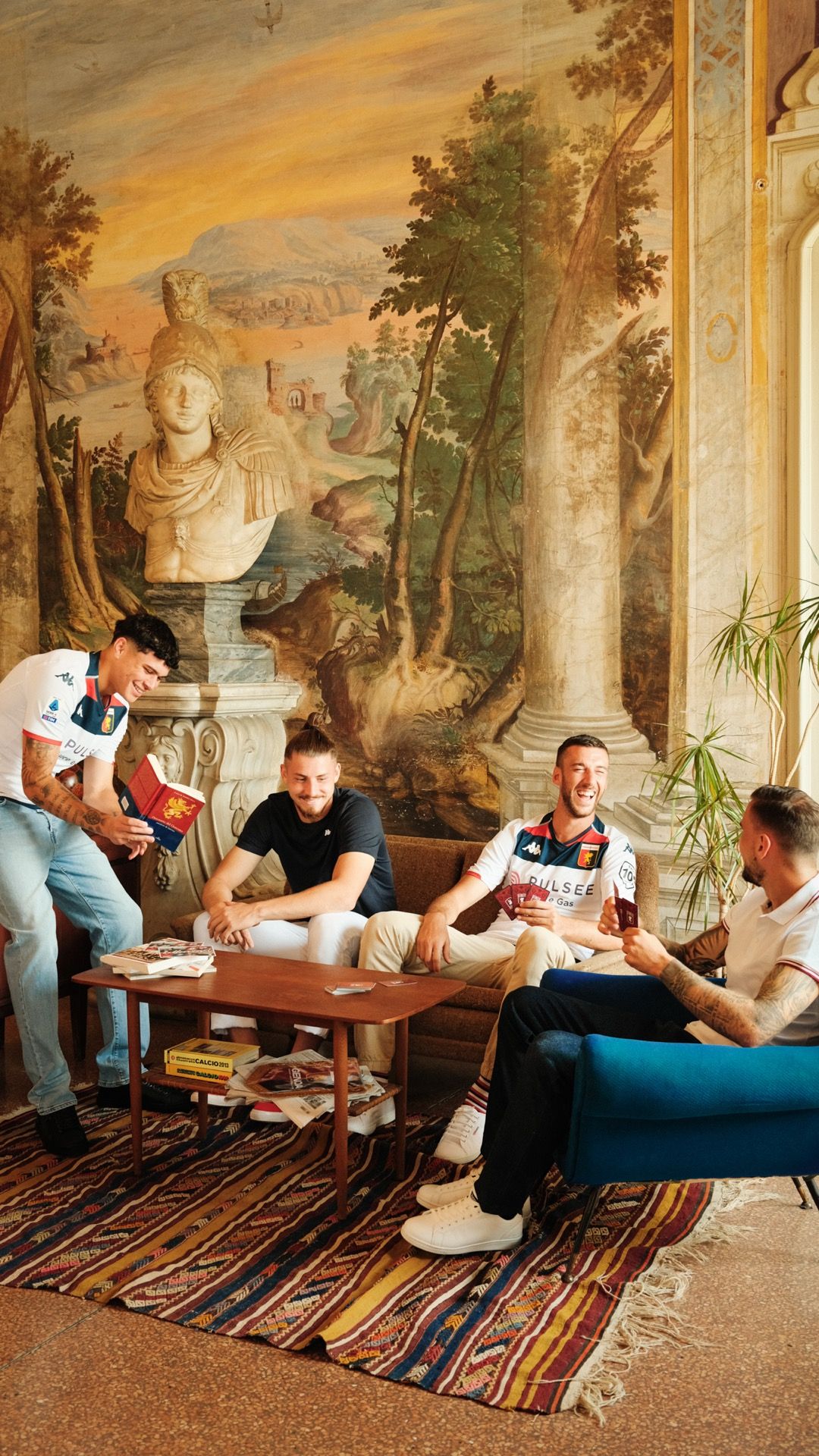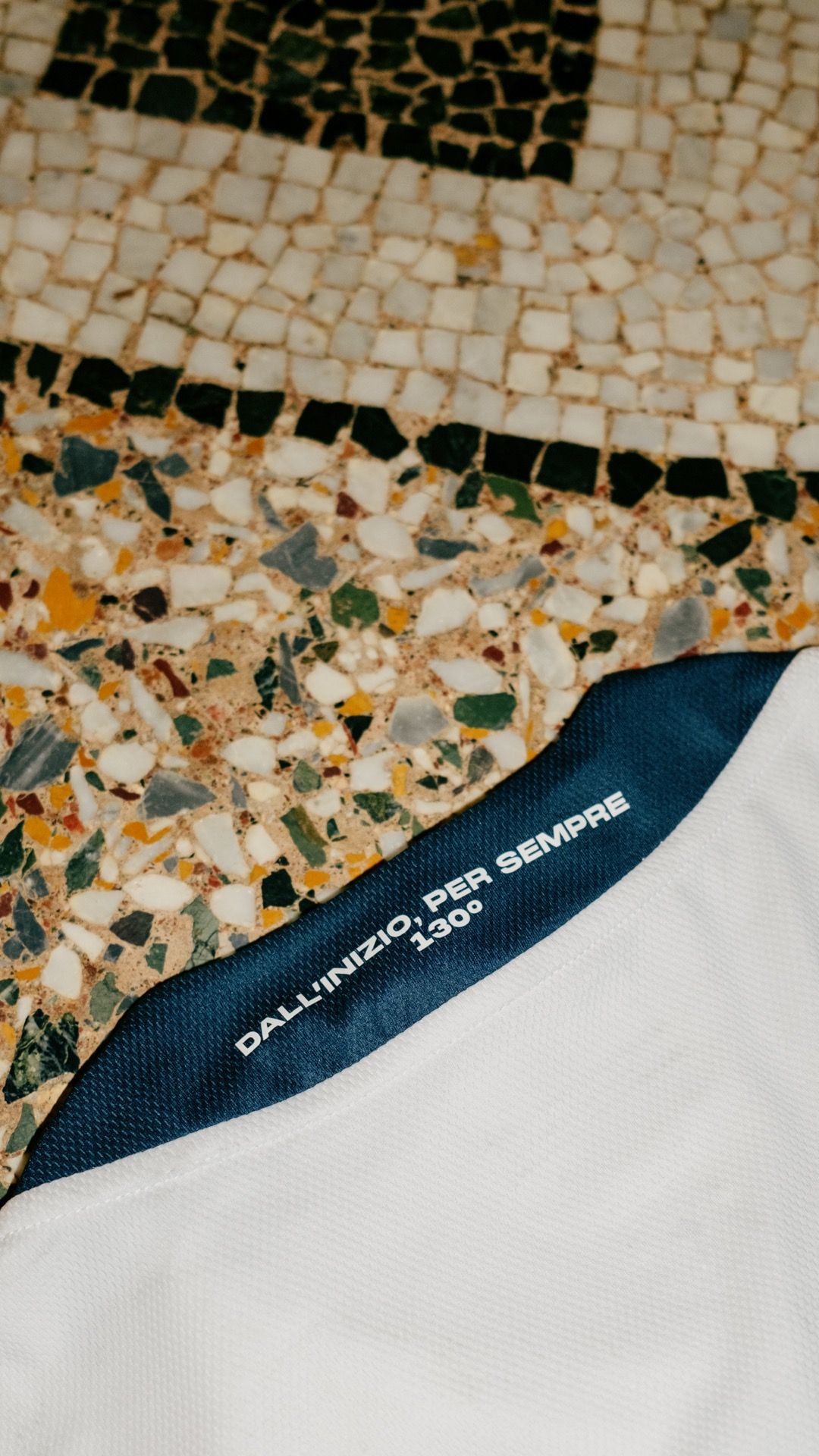 The jersey was shot in the prestigious Villa Rostan and in the palaces of the Circonvallazione a Monte. It took advantage of the magic and geometric play of the 'Genoese style' floors that frame characteristic and unique living spaces. A way to show how the Gialloblù jersey can make you feel at home, in line with the concept of the "Feel Like Home" launch.