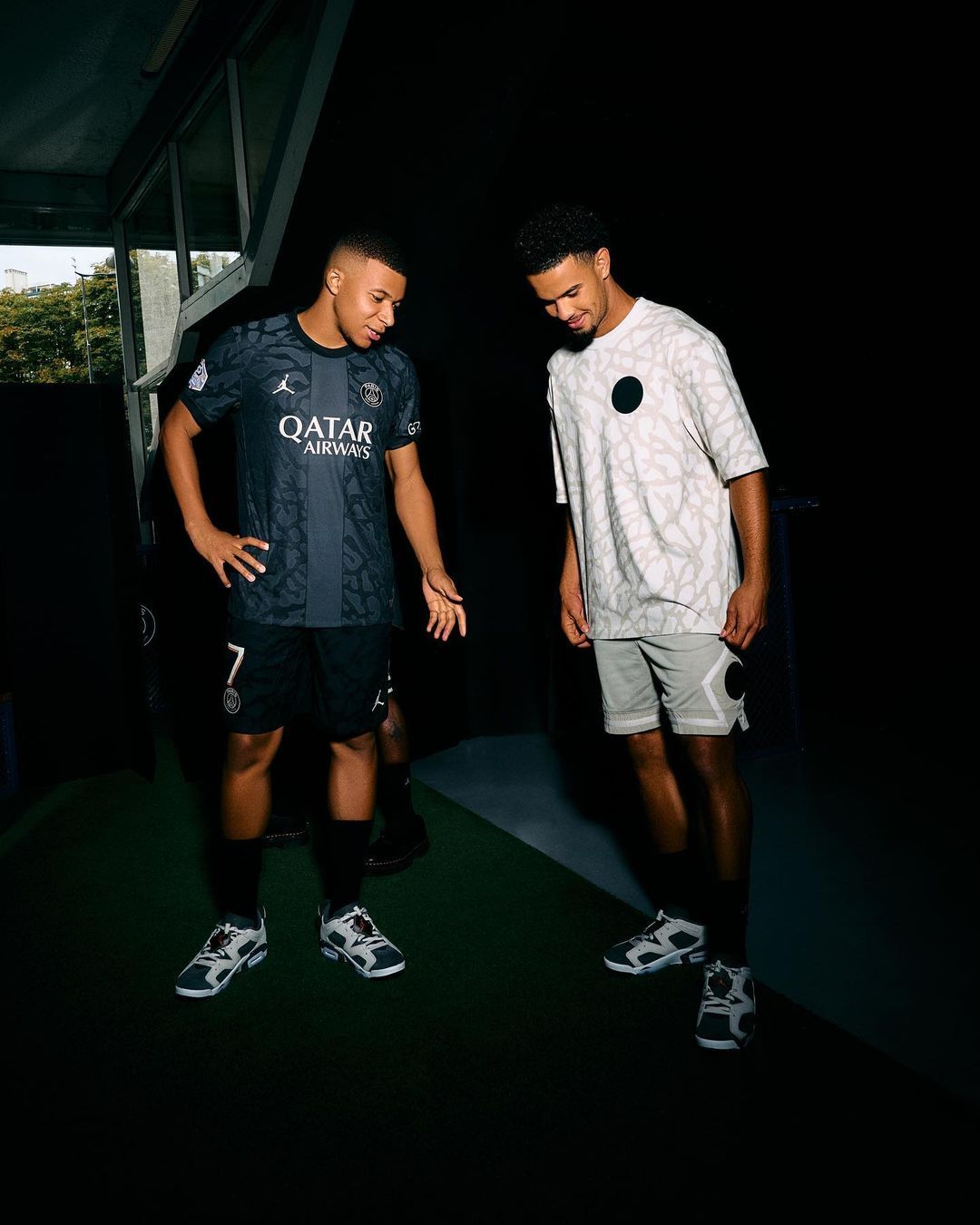 Alongside the new jersey, PSG also unveiled Champions League lettering, contrasting orange and a new Pre-match jersey with the same cement pattern. Along with the third jersey, a Jordan Brand lifestyle collection was also launched, including T-shirts, shorts, hoodies, fleeces and jackets, and most notably two Jordan trainers with the Paris club logos: a Jordan 3 black and a Jordan 6 low in grey. Further proof that for PSG, even the introduction of the third jersey is a way to build an aesthetic identity and communication as a true fashion brand.