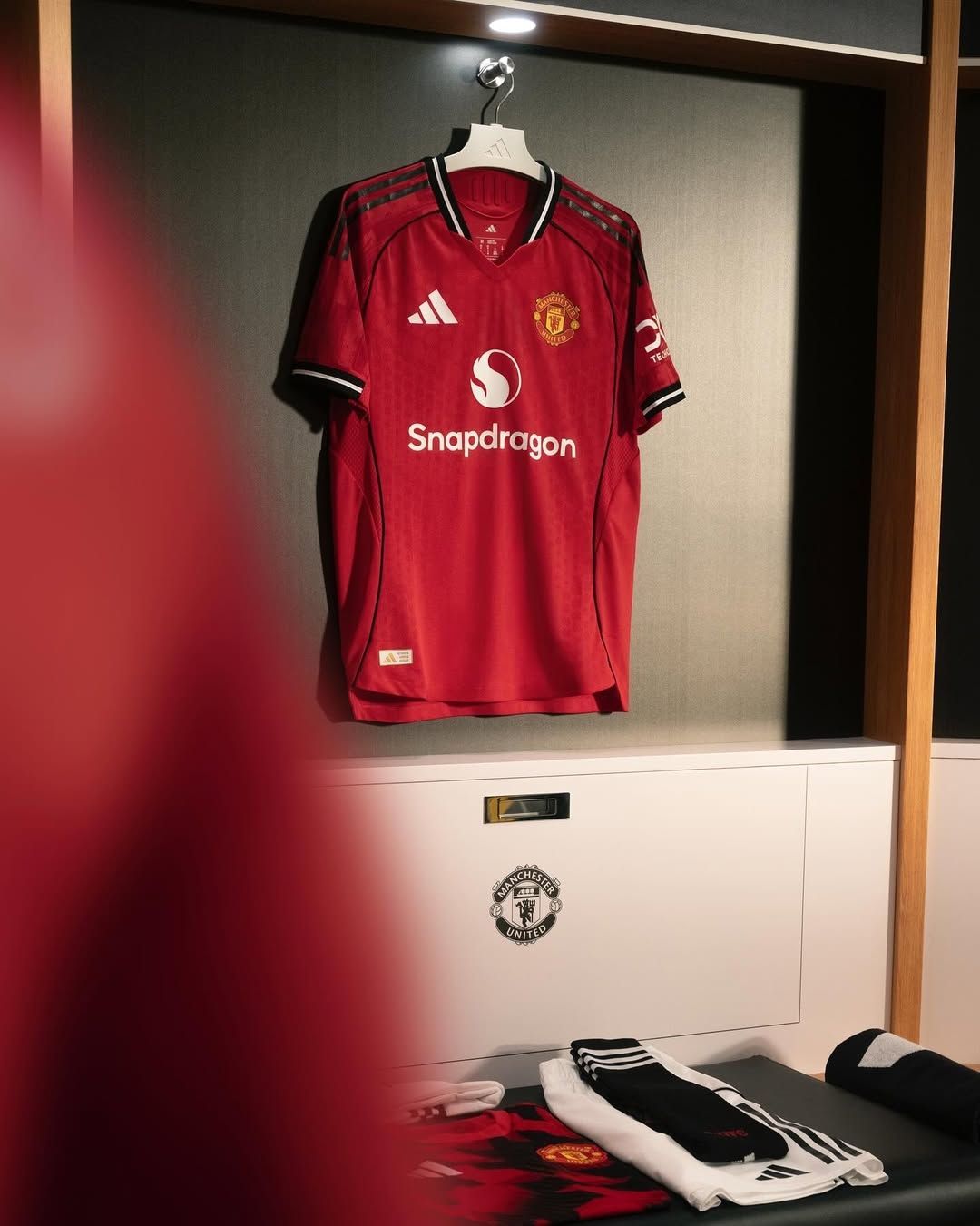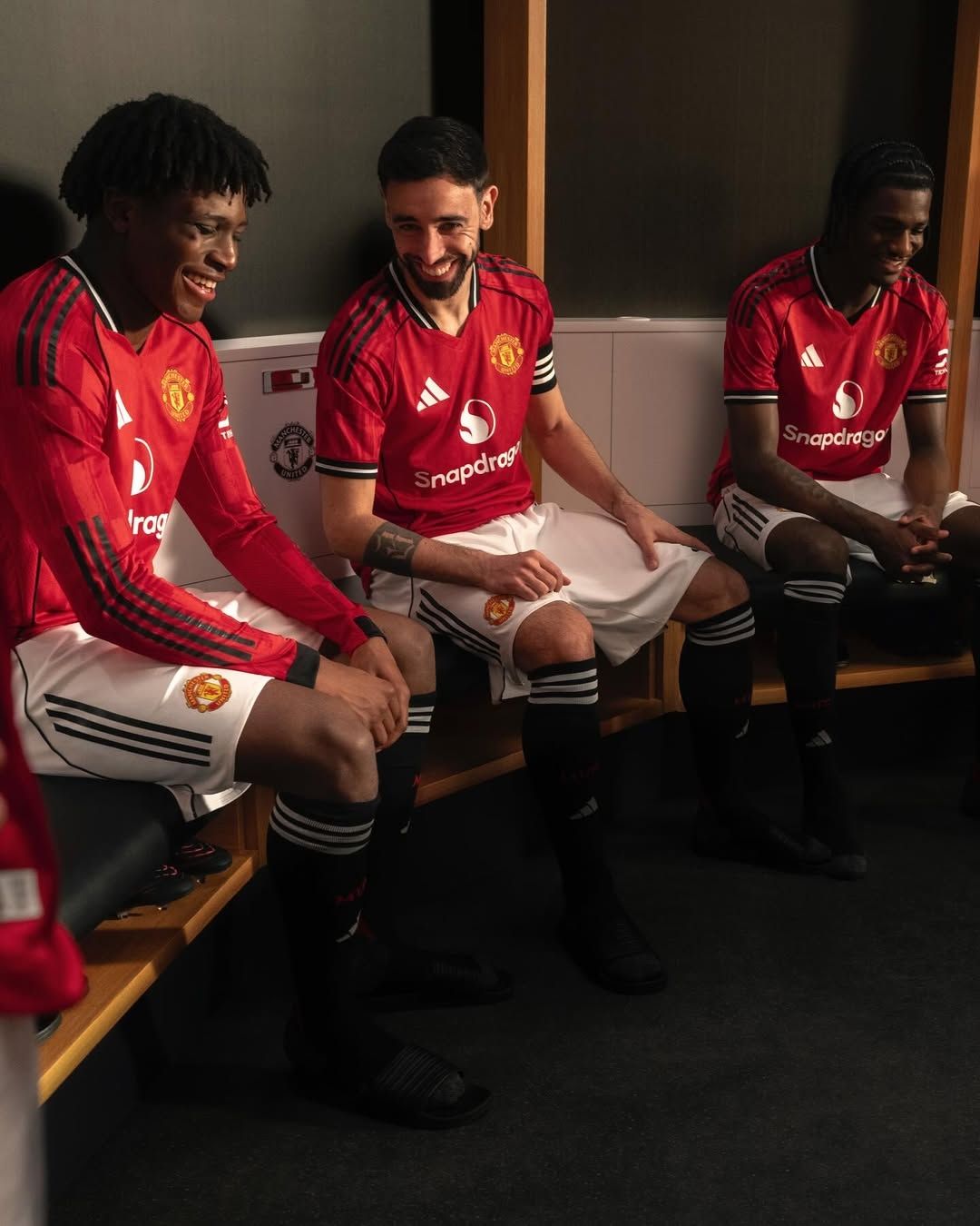 The new Home jersey of Manchester United has been unveiled, a shirt designed by adidas that, as expected, features the Teamgeist pattern. The inspiration comes from Old Trafford, the historic stadium of the Red Devils, which is honored with a white inscription on the back of the collar that reads "Theater of Dreams", the unofficial name of the stadium. Additionally, the sleeves of the shirt, both in the short sleeve and long sleeve versions, are enriched with a pattern in various shades of red to highlight different elements of the pitch, the stands, and the tunnel.