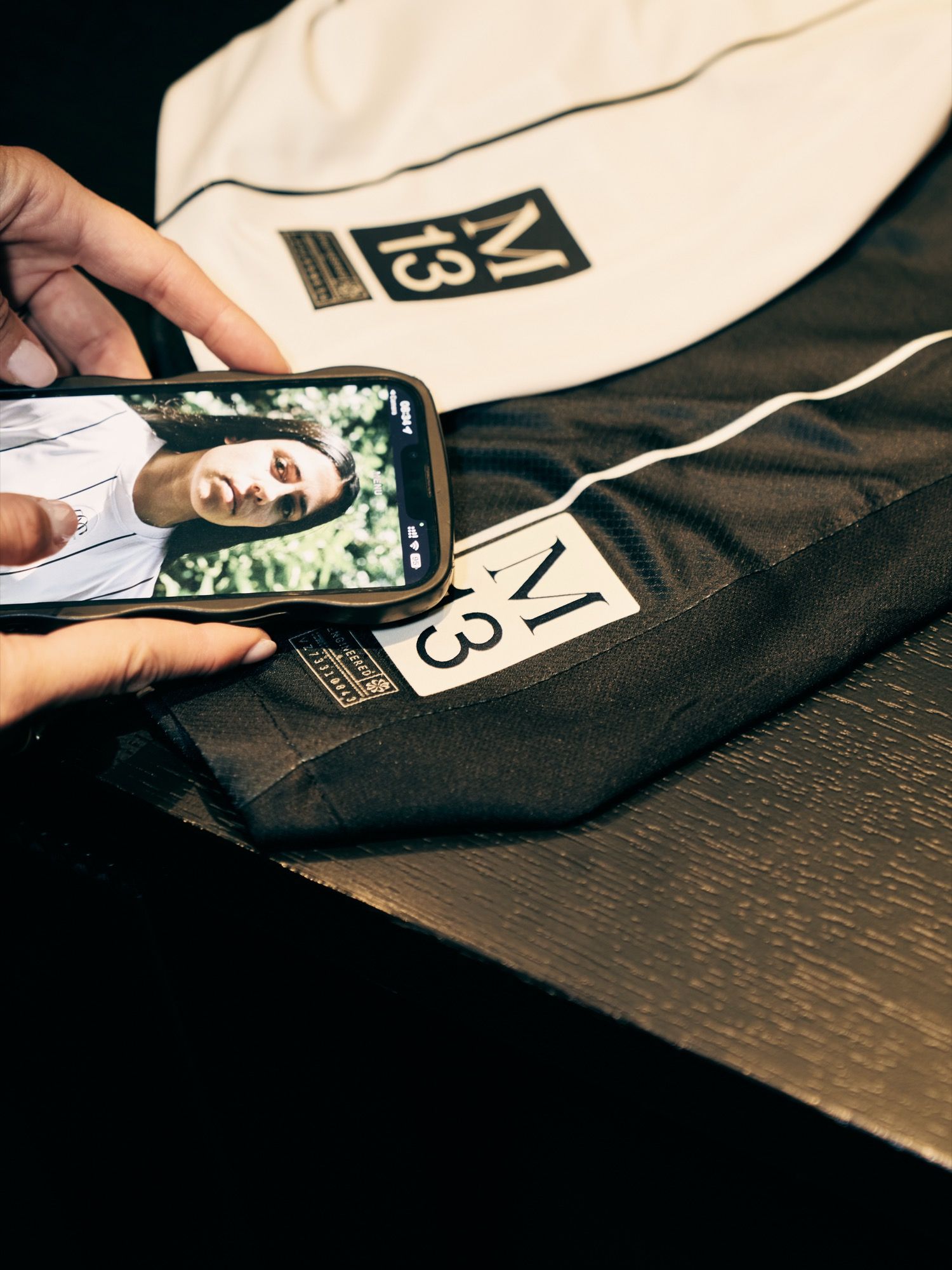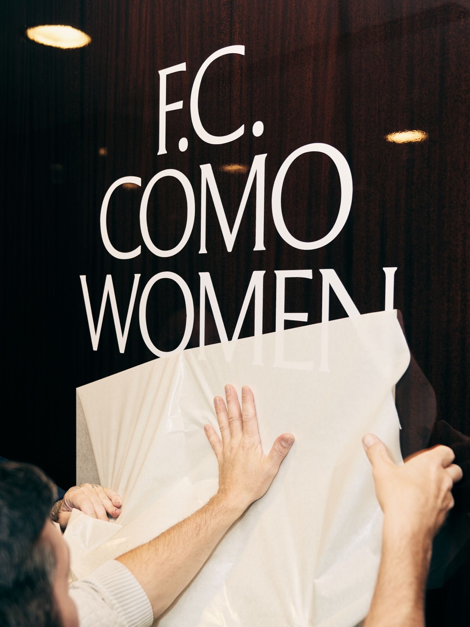 Everything spoke of luxury and tailor-made during our individual meeting: from the delivery of the jersey inside a customized garment bag, to the opportunity to meet two seamstresses for garment personalization. One took care of the fitting, while the other was available to embroider a custom word or initials on the sleeve, with various typefaces to choose from. But perhaps the most emblematic element of the welcome was the final touch, perfectly summing up the essence of Como Women’s branding and, of course, Mercury/13 — whose DNA was clearly reflected in this special presentation: thanks to a collaboration with Avery Dennison, 10 limited-edition jerseys were created for the occasion, each featuring a special badge that, when scanned, links to an annual membership granting privileged pitchside access to Como Women’s home matches.