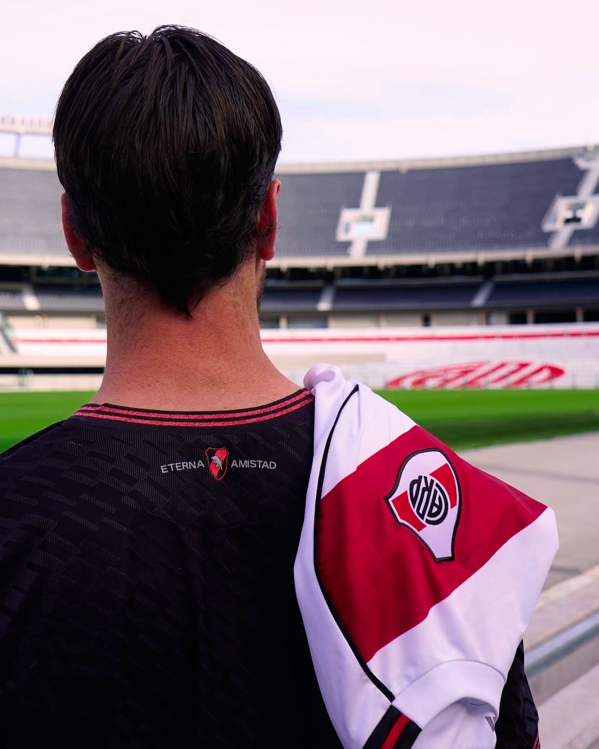 Both clubs have repeatedly celebrated their historic twinning on their playing shirts over the years, and this new creation from Joma fits perfectly into that tradition. It is an anthracite gray jersey whose main detail is a black band drawn diagonally across the front that recalls the famous red sash of River Plate, a distinctive feature that, according to the official version provided by the Argentine club, was applied for the first time in 1901 so that River could distinguish itself from all the other teams that used plain white shirts. The choice of color, anthracite, is also a tribute to River Plate as it is one of the colors most used by the Argentine side for third kits.