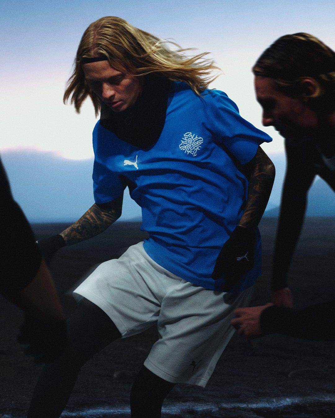Although Iceland's hopes of qualification have faded, PUMA still created a vibrant kit. The jersey is inspired by the primal force of the country's volcanic landscapes and the glacial resilience of its people, symbolizing the fusion of fire and ice. This design celebrates the glaciers, the volcanoes and a team ready to show itself again on the world stage. The lively blue base offers a modern, clean, essential and bold look—just like Iceland itself.