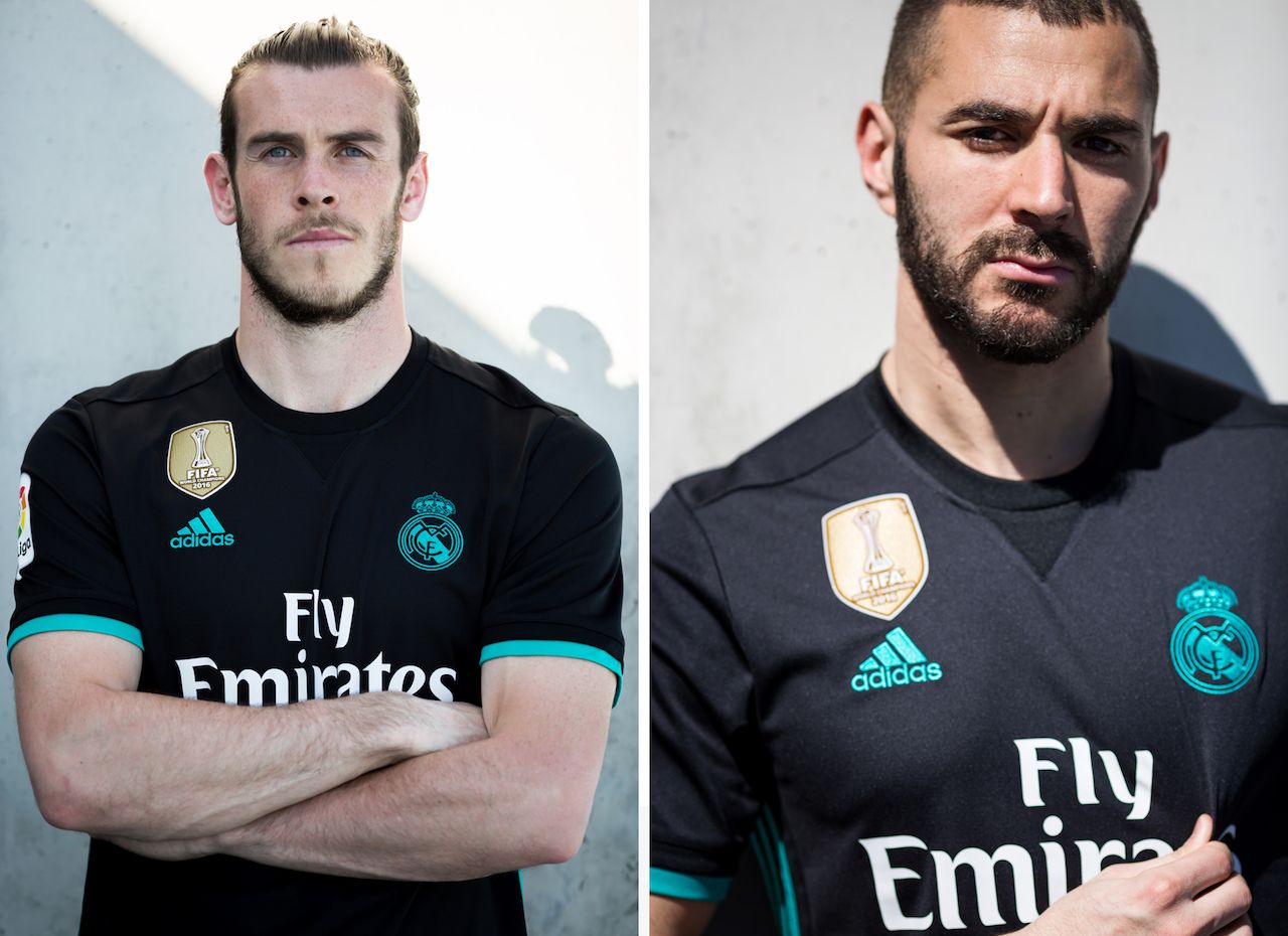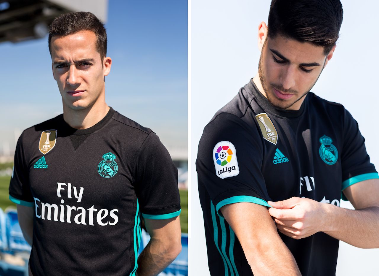 Real Madrid 2017/18 away kit For the Merengues' away kit, adidas chose for a combination of black and Aero Reef with neon effect