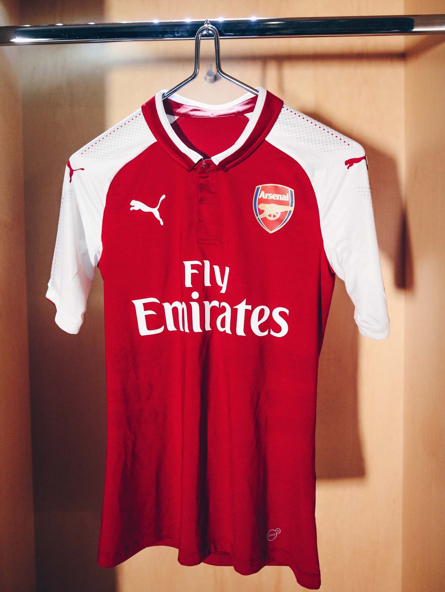 PUMA presents the new Arsenal home kit for the 17/18 season Quite similar than the last season's one, the new shirt for the Gunners made its debut