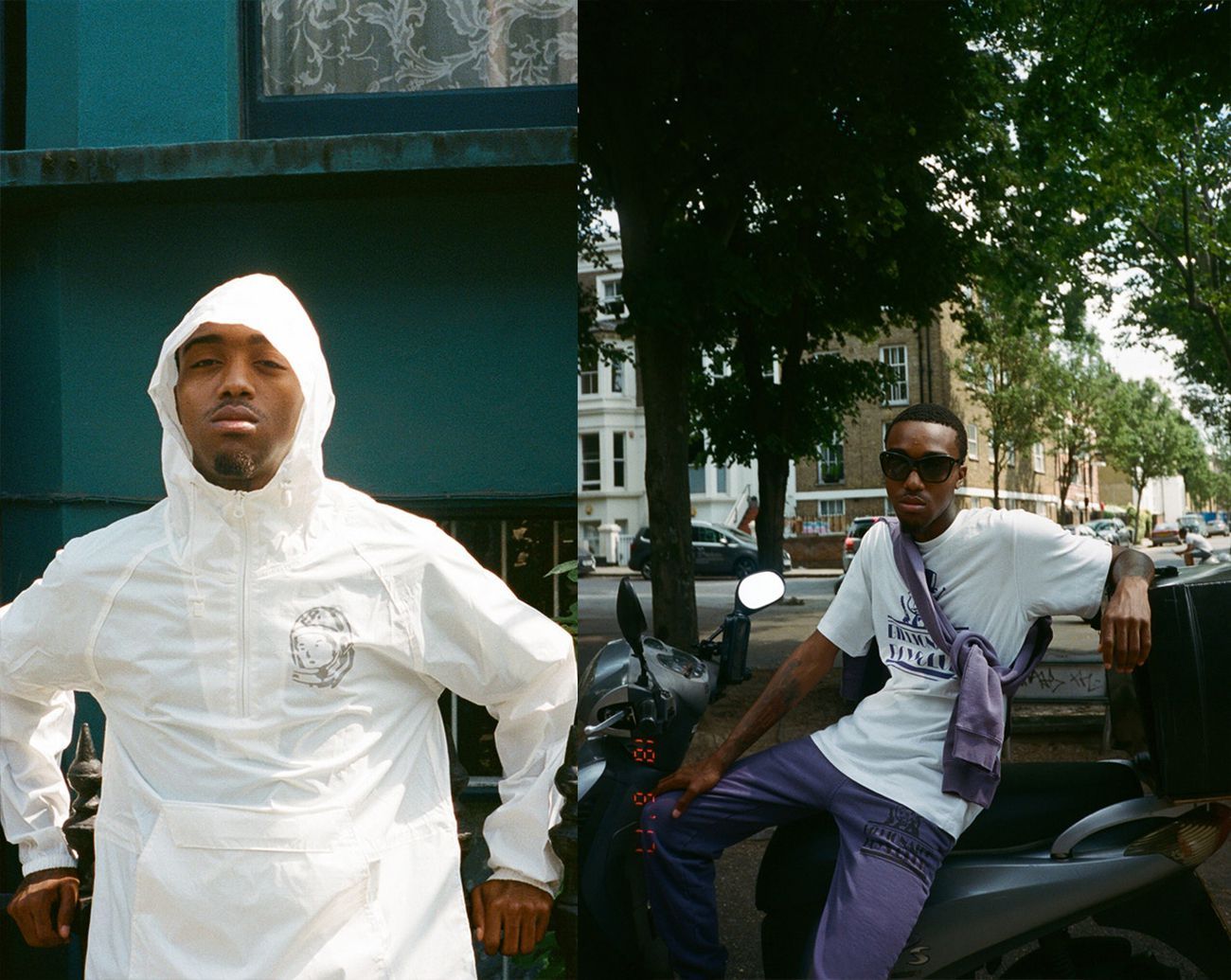 In this case, the jersey in question is part of the 2017 Pre-Fall collection lookbook by Billionaire Boys Club EU, shot by Ciesay in the streets of West London using A$AP Mob affiliated Swoosh God as the model. In BBC EU’s Pre-Fall collection in fact, other than a series of tees, hoodies, shorts, and windbreakers, there’s space for a pink football jersey, decorated with not one, not two, but four crests on the chest. Like saying, Billionaire Boys Club always goes big. The name of the brand, repeated on the front and back of the jersey, also seems to confirm this philosophy.