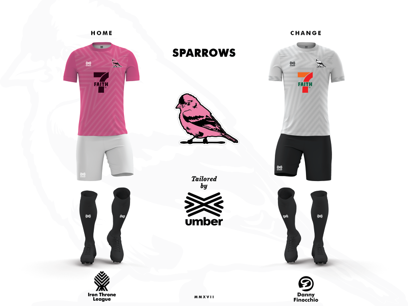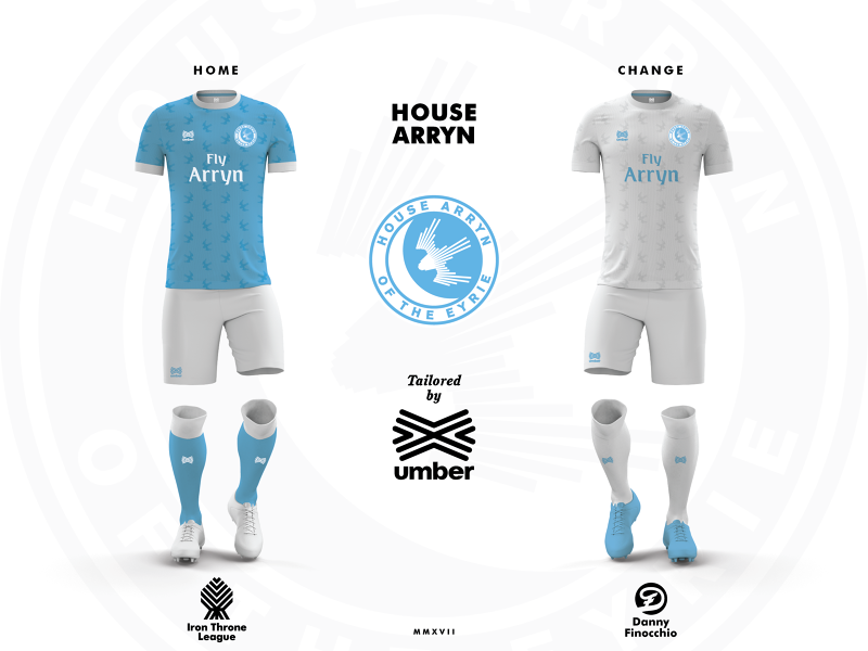 For all the Game of Thrones squads, Danny Finocchio designed a home and away kit, also with shorts, socks, and a different sponsor badge for everyone, that can actually be considered as the best part. The Night’s Watch, in fact, is sponsored by “Night’s Watch Wall Security”, while the “Fly Arryn” - maybe owned by Braavos sheiks - are on the namesake house’s shirts. Shout out to Danny Finocchio, which managed to bond perfectly two of the most beloved things in the world, football and Game of Thrones.