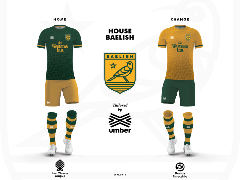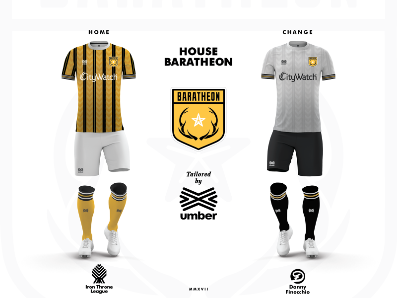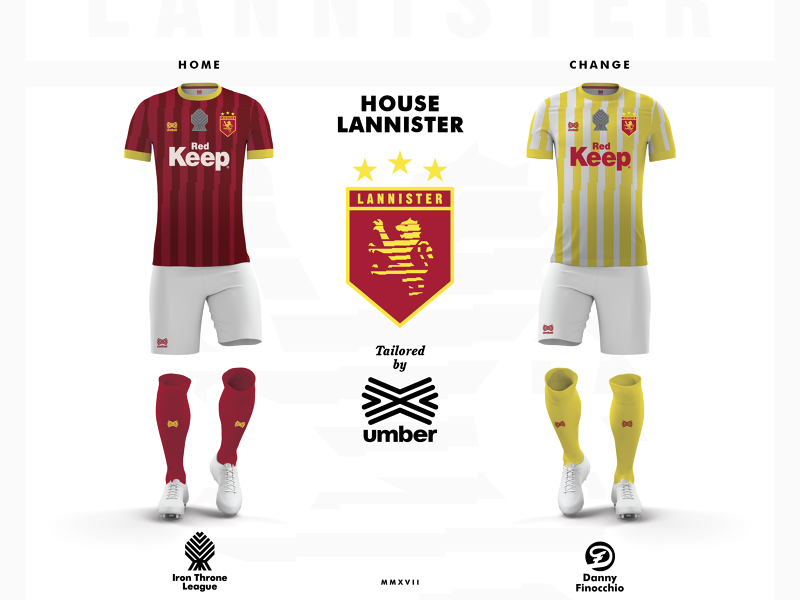 Game of Thrones kits made by Danny Finocchio The designer imagined the football uniforms for all the houses of the popular tv show