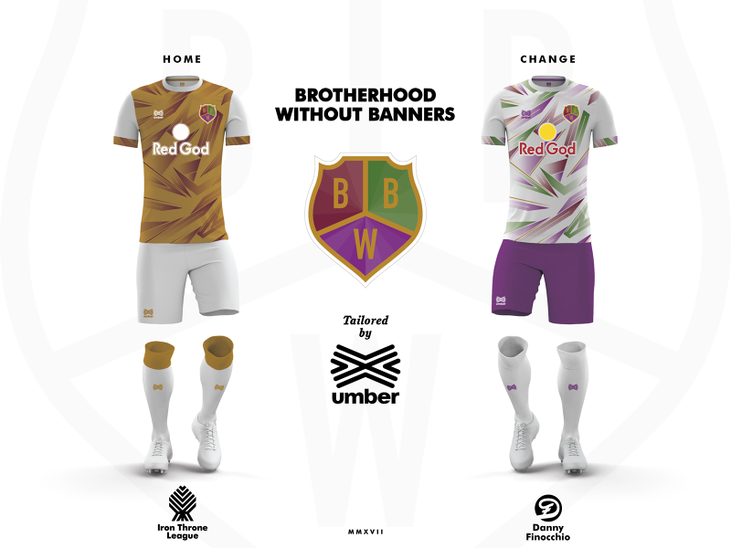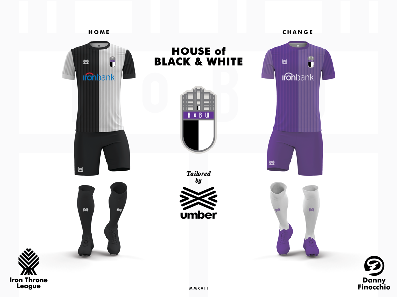 To participate in the Iron Throne League - the run for the Iron Throne, assigned on the pitch and not on the battlefield - are all the houses that live in the Seven Kingdoms, but also in Essos, the eastern continent where all the major adventures of Queen Daenerys happened. Not only the great families though, as also the Free Folk, the House of Black and White, and the Brotherhood Without Banners received their own football-inspired kits.