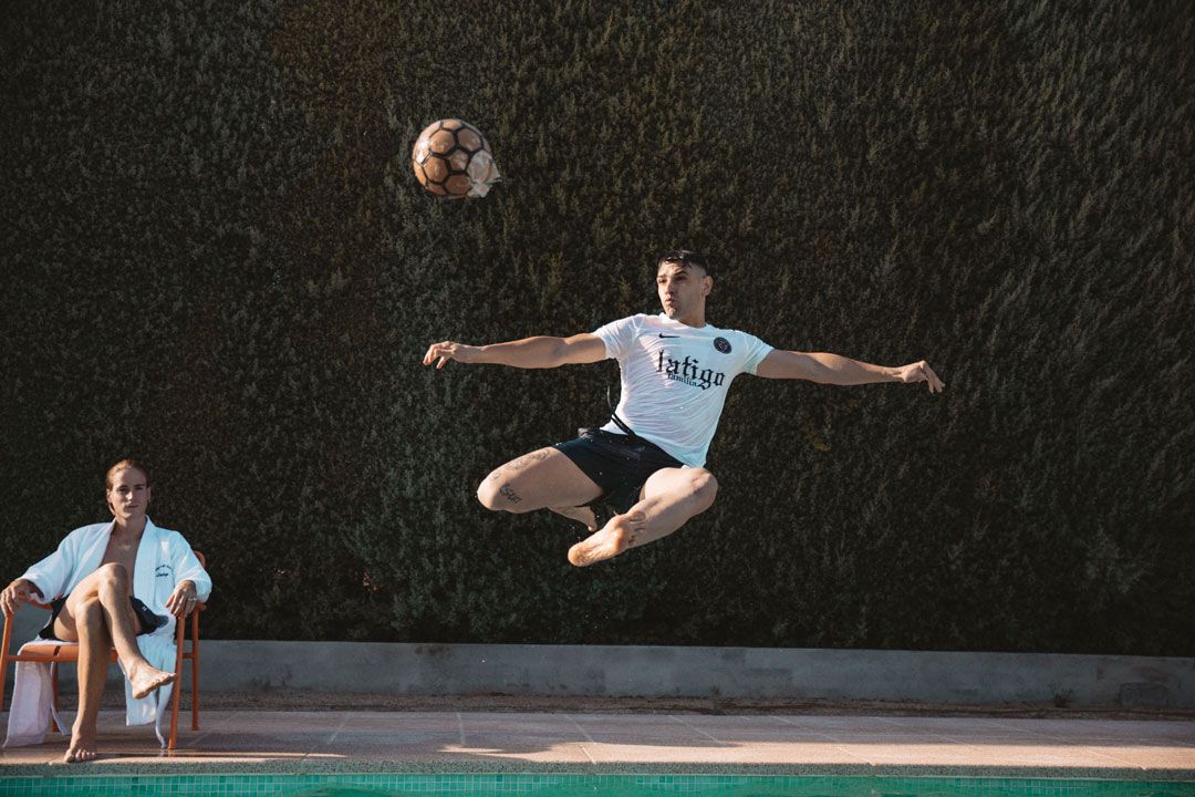 Just a few months after the release of its first drop, Dellafuente FC - the fictional football club founded by La Ti Go and the artist Dellafuente, is back with a second release that involves an away shirt and a bathrobe. Also this collection was realized in collaboration with Nike, and as the same name tells, the "Escuela de Calor" is a perfect summer anthem.