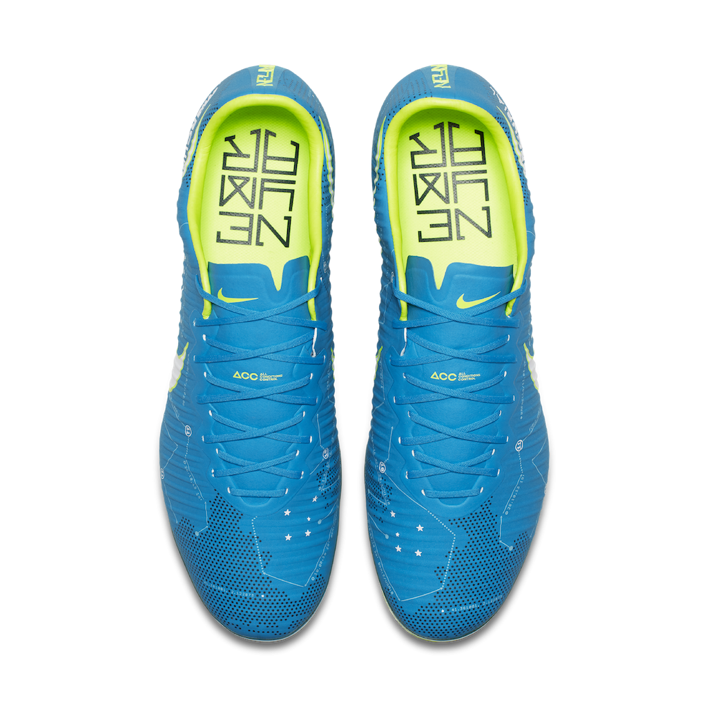 “I grew up wearing Mercurial as a kid, so it’s like a dream to have my story on this boot," says Neymar Jr. "It means a lot that it’s not just about me, but my family and the moments I shared with great teammates on the pitch. Growing up in Brasil, football is everything, I am very proud of my country and I hope they are proud of me too.” And it was the Carioca flag itself to inspire the coloration for Neymar Jr’s new Mercurial Vapor, realized with an electric blue and vivid light green.