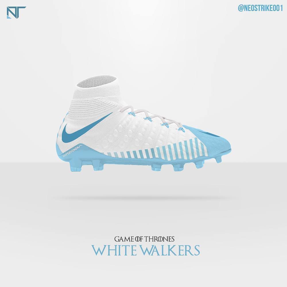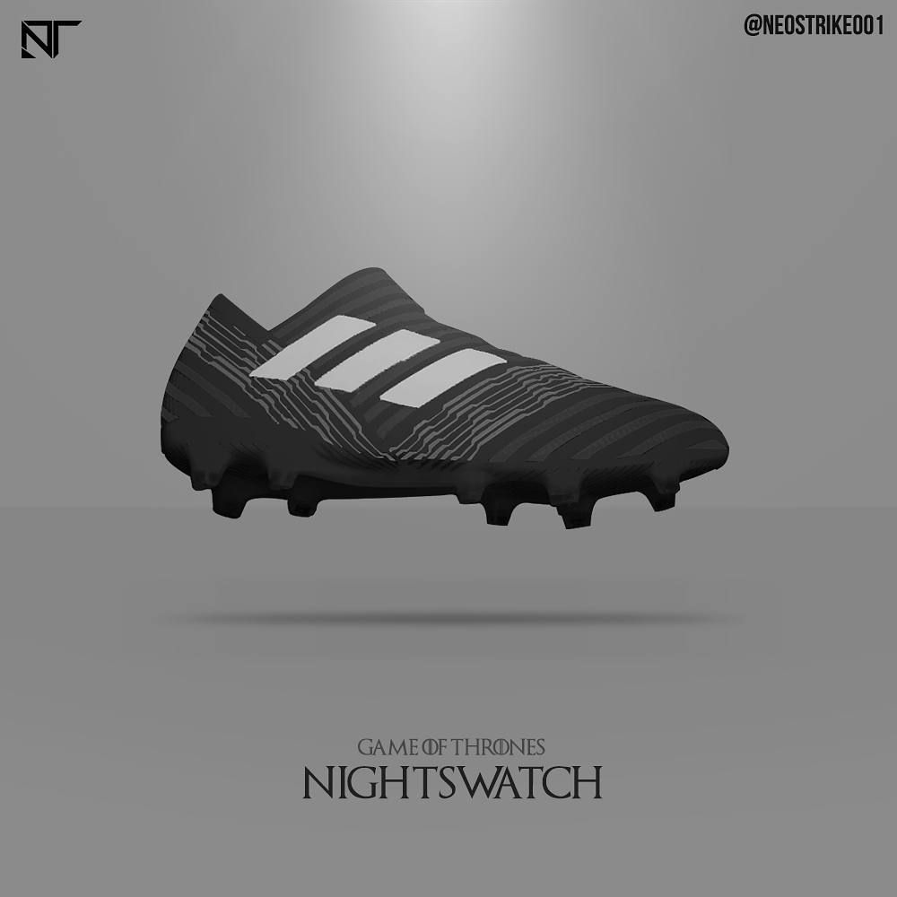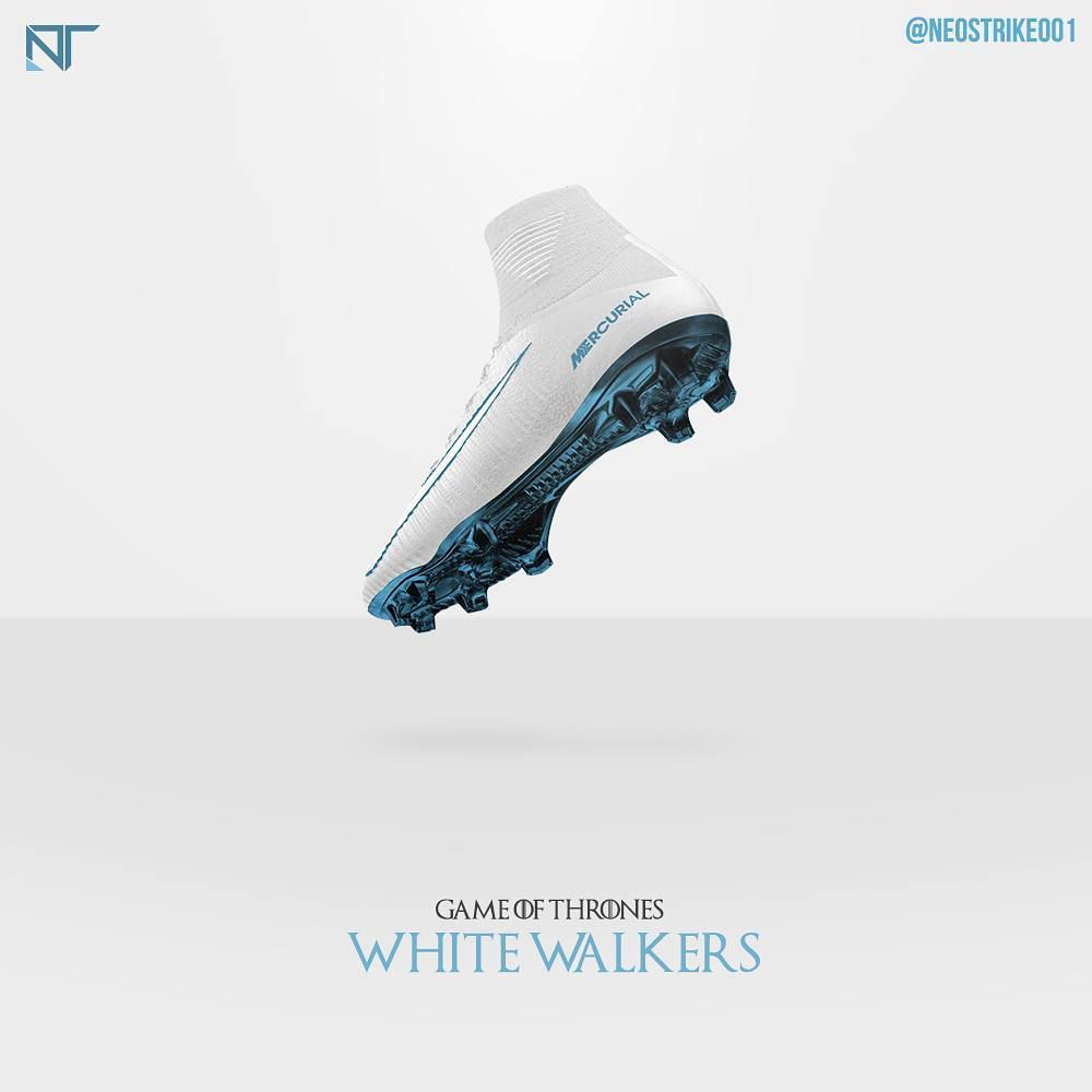 For the order of The Nightswatch the concept boots and kits are by adidas, feature a dark color schemes while incorporating the symbols of the military order. Instead - for their true enemies, the White Walkers - Thomas picked Nike, with a very clear design and coloration that reminds that winter has come.