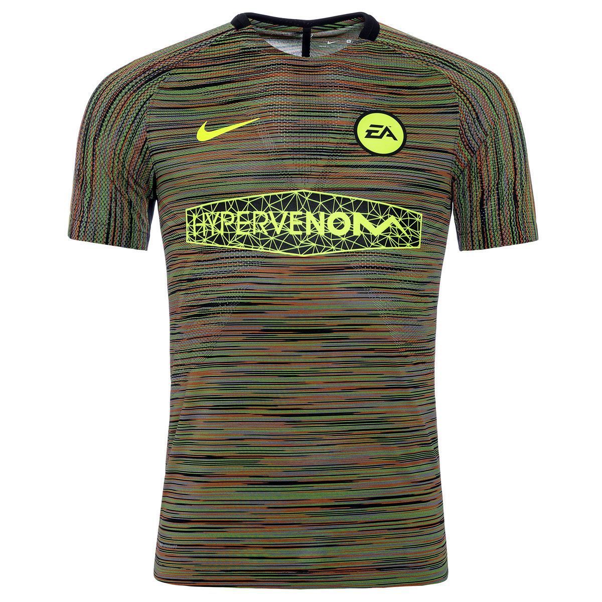 It features a unique all-over multicolor knit pattern and contrasting collar and sleeves along with EA Sports branding in the form of a neon badge on the left chest. As a finishing detail, the jersey makes use of a focal Hypervenom branding complete with Real Player Motion Technology graphics to tie everything back together.