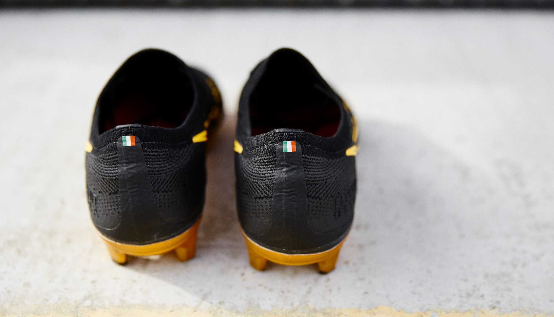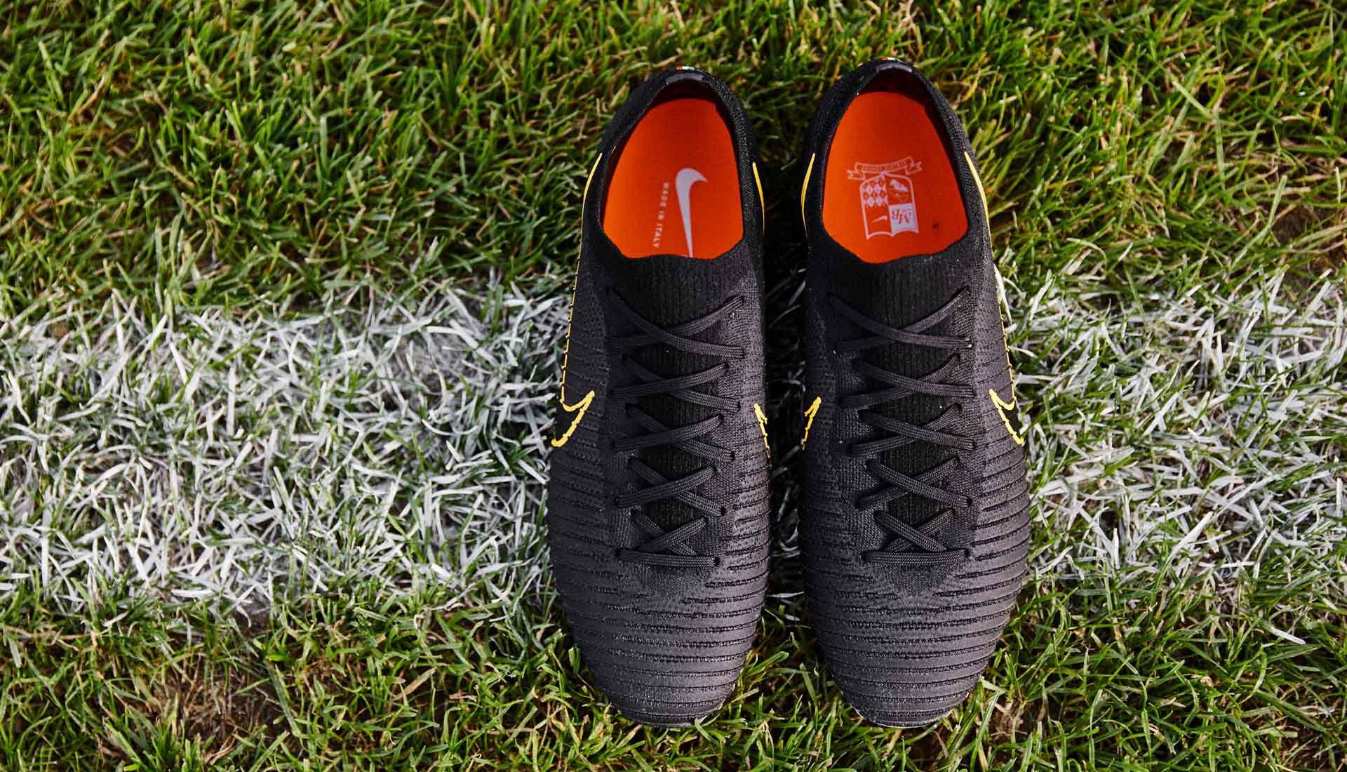 The new Mercurial Vapor Flyknit Ultra has a low sock that adheres with the ankle. On the heel, there’s the Italian flag, as the shoe has been produced in the factory of Montebelluna. The shoe recalls the Mercurial Vapor XI and it’s a preview of the one that we’ll see in the 2018 World Cup in Russia. 2,500 pairs of Nike Mercurial Vapor Flyknit Ultra have been released in triple-black version, and 1,500 in black/gold.