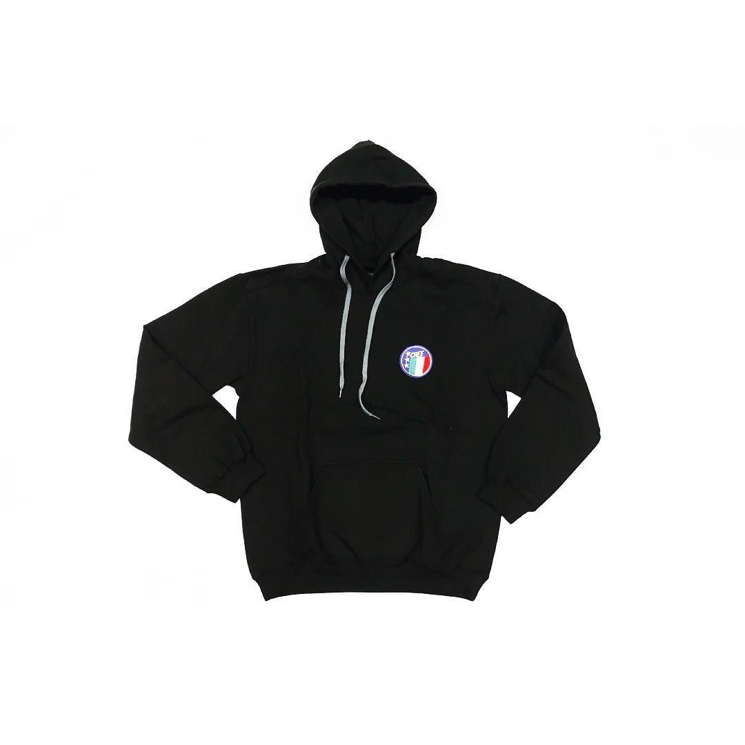 Two black hoodies, the shirt, and the pouch complete the collection. On every piece, the round Italian logo was redesigned following the Italia 90's scheme. The shirt is inspired by the jersey worn by the Azzurri and designed by Diadora: a shiny deep blue colorway decored by a bold font for the numbers on the back. A real gem from this collection is the pouch.