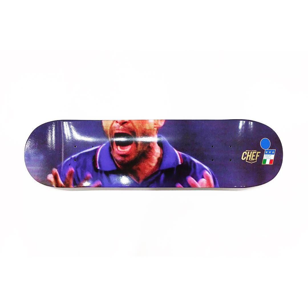 Memories of Italia 90: Totò Schillaci's crazy eyes, the Notti Magiche soundtrack, Maradona scoring at San Paolo, the shiny Azzurri's shirts and the mascotte Ciao!. The Italian World Cup was probably the second (behind USA '94) most iconic global tournament from the apparel and aesthetic perspective. It condensates all the rampant imaginary of the late '80s in a country on the edge of his fame and growth, the Italian streetwear brand Chef Family took inspiration from that aesthetic for its latest capsule collection that mixes skate culture with football, blinking to the Nostalgia.