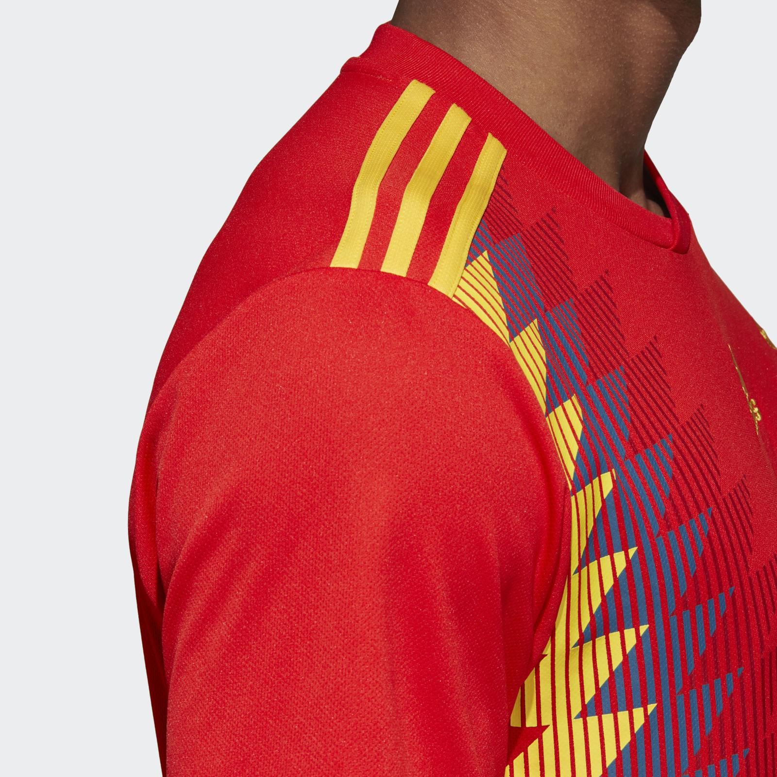 The design of the shirt summarizes the courage and fury of our team, with red, yellow and blue diamond graphics, which represent the best qualities of this team: speed, energy and its well-known style of play. The development of the jersey is a long process of collaboration between Adidas and Spain, which starts up to 18 months before the tournament. Both entities decide on the model, design and colors that the team will wear.