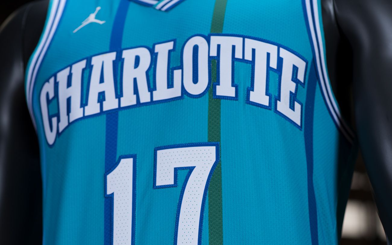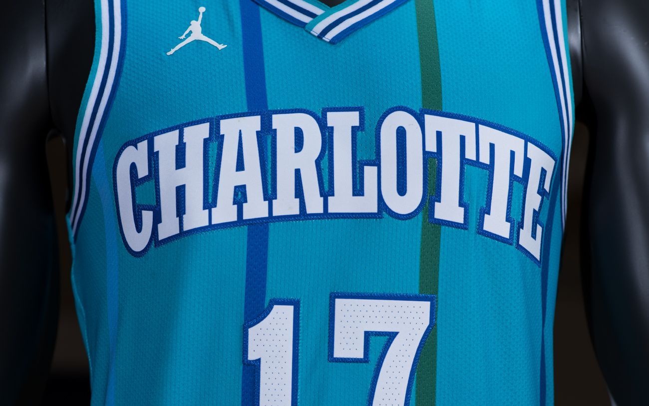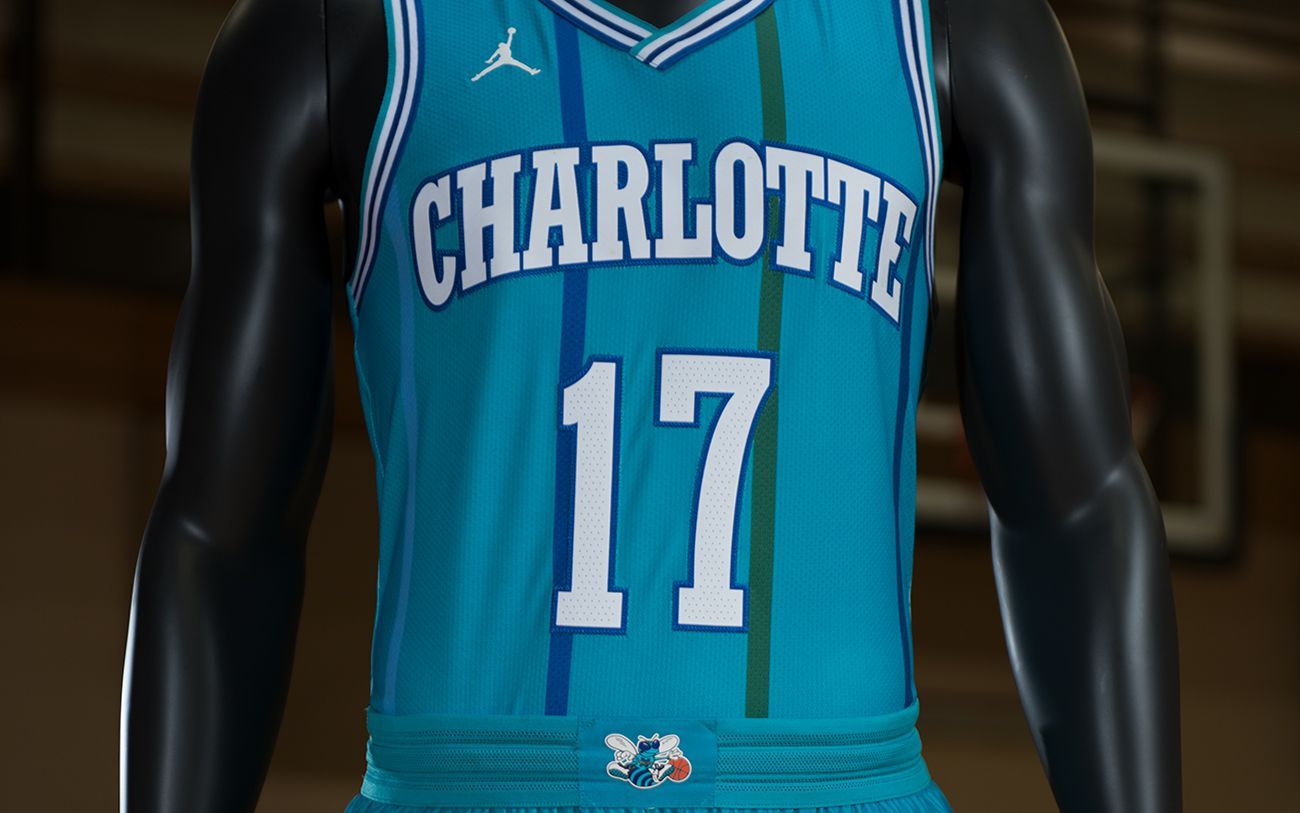 Tonight the Charlotte Hornets will wear for the first time in the season their a classic jersey designed by Nike bringing back the design worn by the original Charlotte Hornets from their inception in 1988 through 1997. The uniform will have "Charlotte" across the front of the teal jersey and includes the familiar crossover V-neck and multicolored pinstripes in royal blue, light blue, purple and green. A noticeable difference between the two is the thickness of the pinstripes. From the available image, the new uniform appears to have thicker vertical lines than the original.