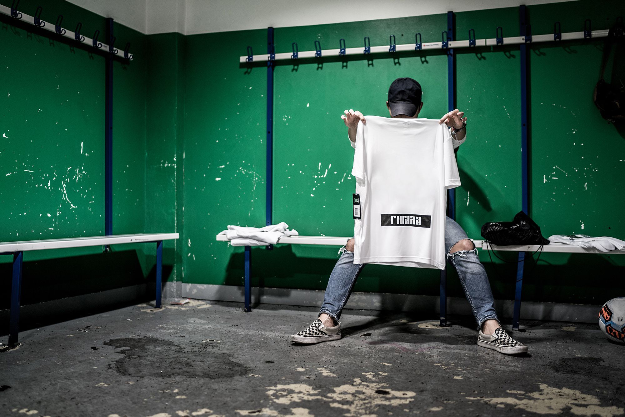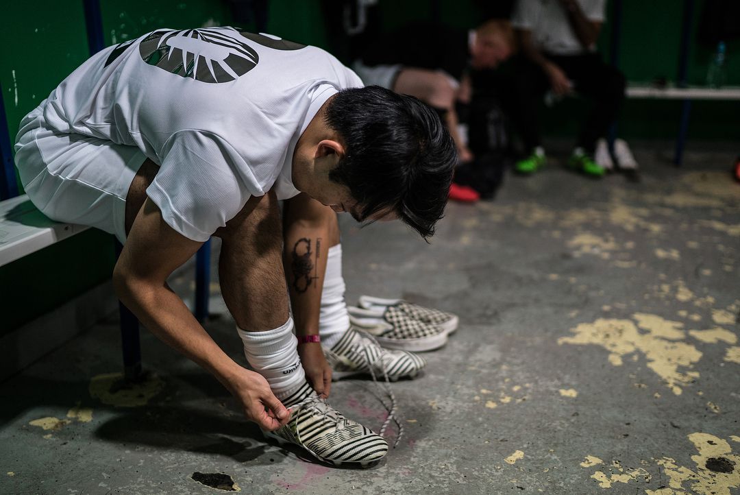 The shirt's back is decorated with Cyrillic font (which reads phonetically as 'Guerrilla') as a tribute to the World Cup in Russia next year and may also serve as a wink to the contemporary political situation in the nation's capital. This is the first of several drops planned under the banner of the Umbro x Guerrilla FC collab.