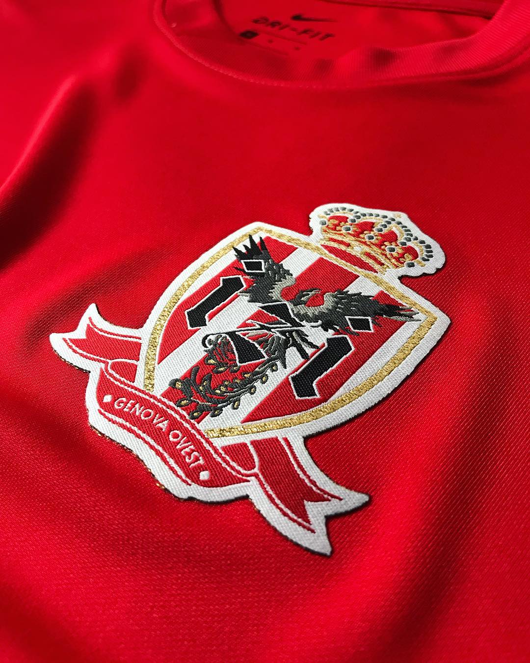 The team of the rapper from Cogoleto is the last one to join the Rap Champions, of course with its dedicated jersey. The shirt, like all the others, is realized on a template by Nike Football, with white Swoosh on the front side. Izi’s color is red, with the “UEUE” writing as jersey sponsor and the team’s crest on the chest. On the right sleeve, there’s the GVNG logo that mocks the UEFA one, while on the left sleeve there’s the “COGO” writing, reference to Cogoleto, a municipality in the Genoa district where the young rapper grew up. In the crest, there’s another homage to the Ligurian city, as other than the “IZI” writing there’s also the “Genova Ovest” one, reference to one of the Superba’s toll booths.