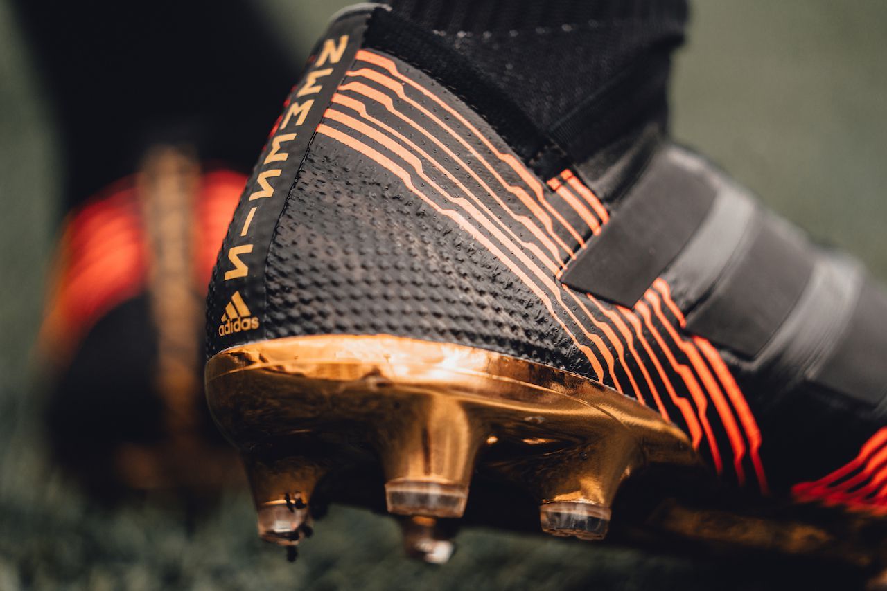 After presenting the new Predator, adidas completes the final pack of the year: the Skystalker Pack. This collection comprehends the Nemeziz 17+ with black/red colorway, with golden soleplate. The Nemeziz Messi is now black an gold with red three stripes. The X17 PureSpeed, worn by adidas Football’s fastest players, is in a bronze colorway, with black and red details. As for the last silo of the Skystalker Pack, there’s the new model of the Copa 18.1, with black and white colors.